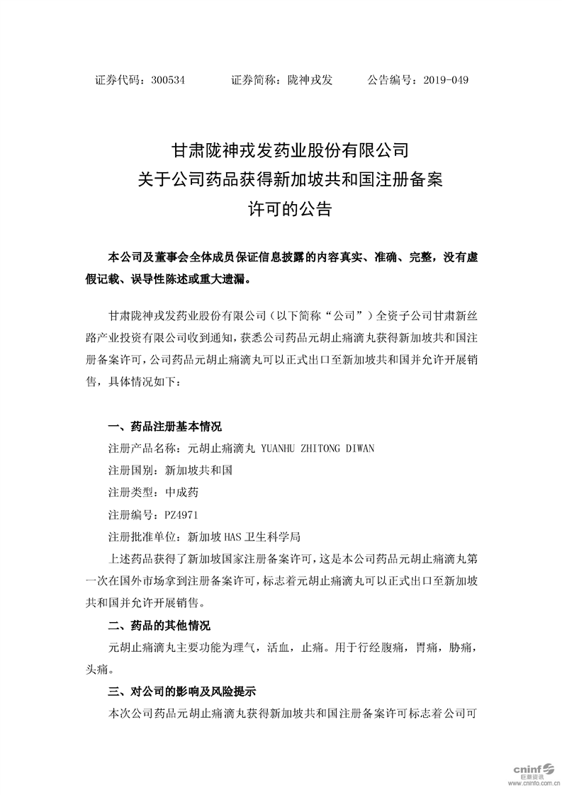 關(guān)于公司藥品獲得新加坡共和國(guó)注冊(cè)備案許可的公告