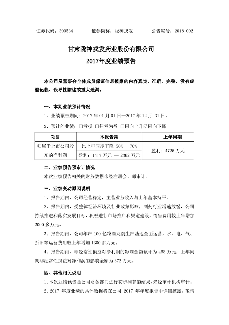 2017年度業(yè)績預告