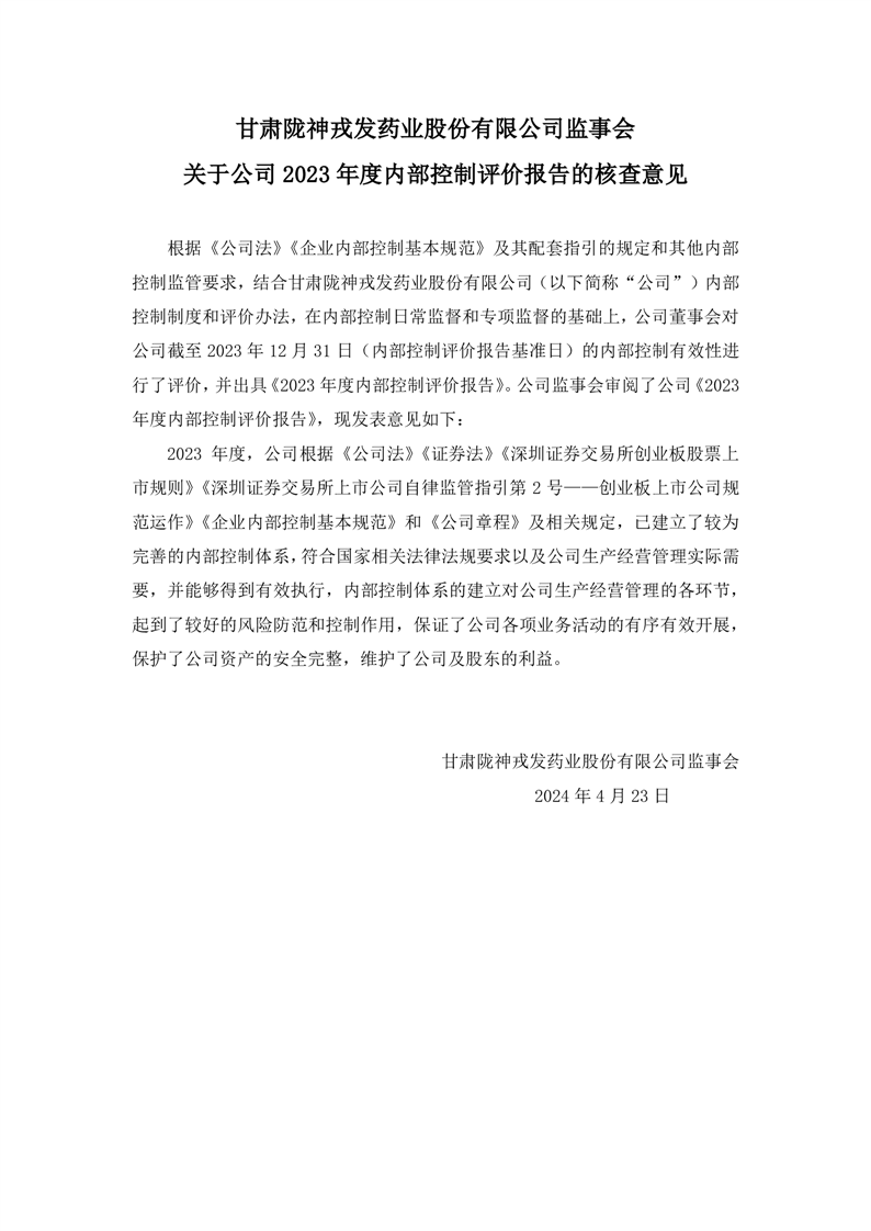 監(jiān)事會關(guān)于公司2023年度內(nèi)部控制評價(jià)報(bào)告的核查意見