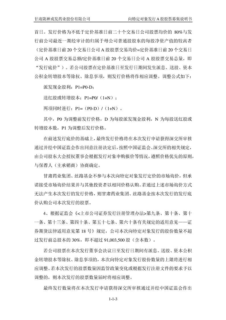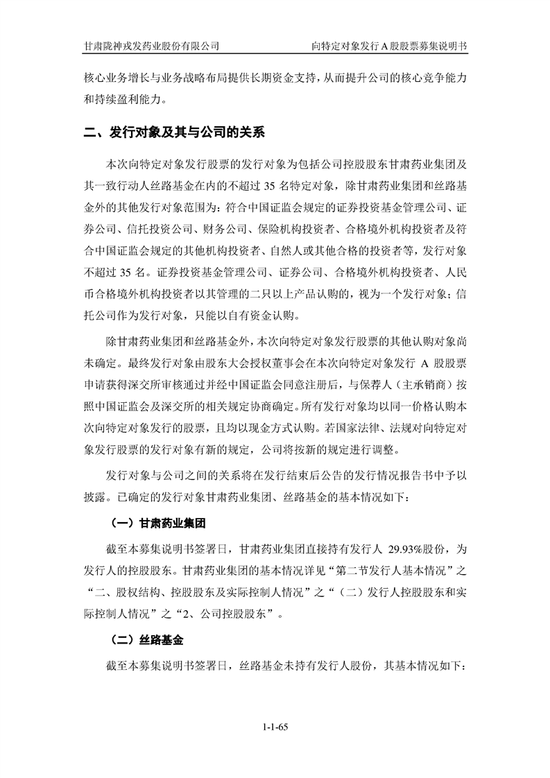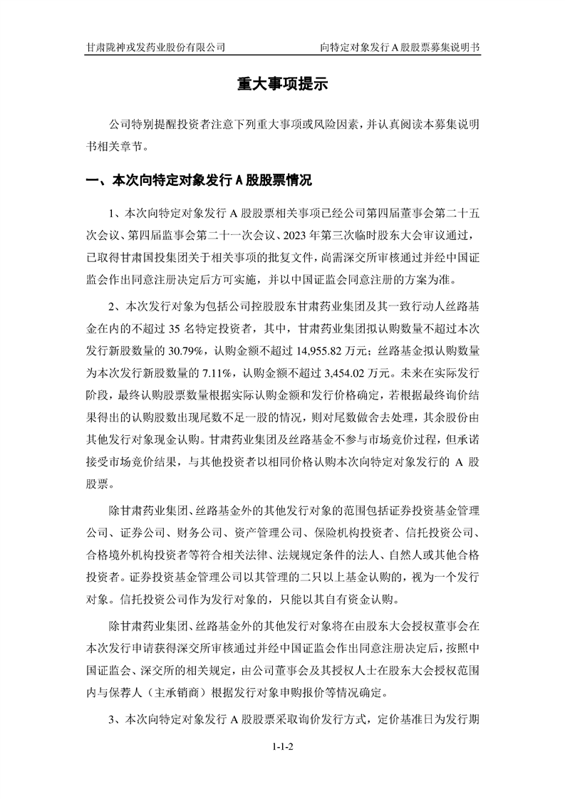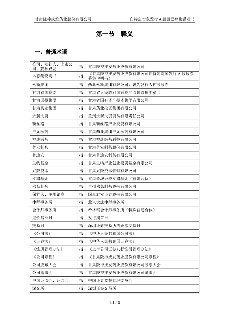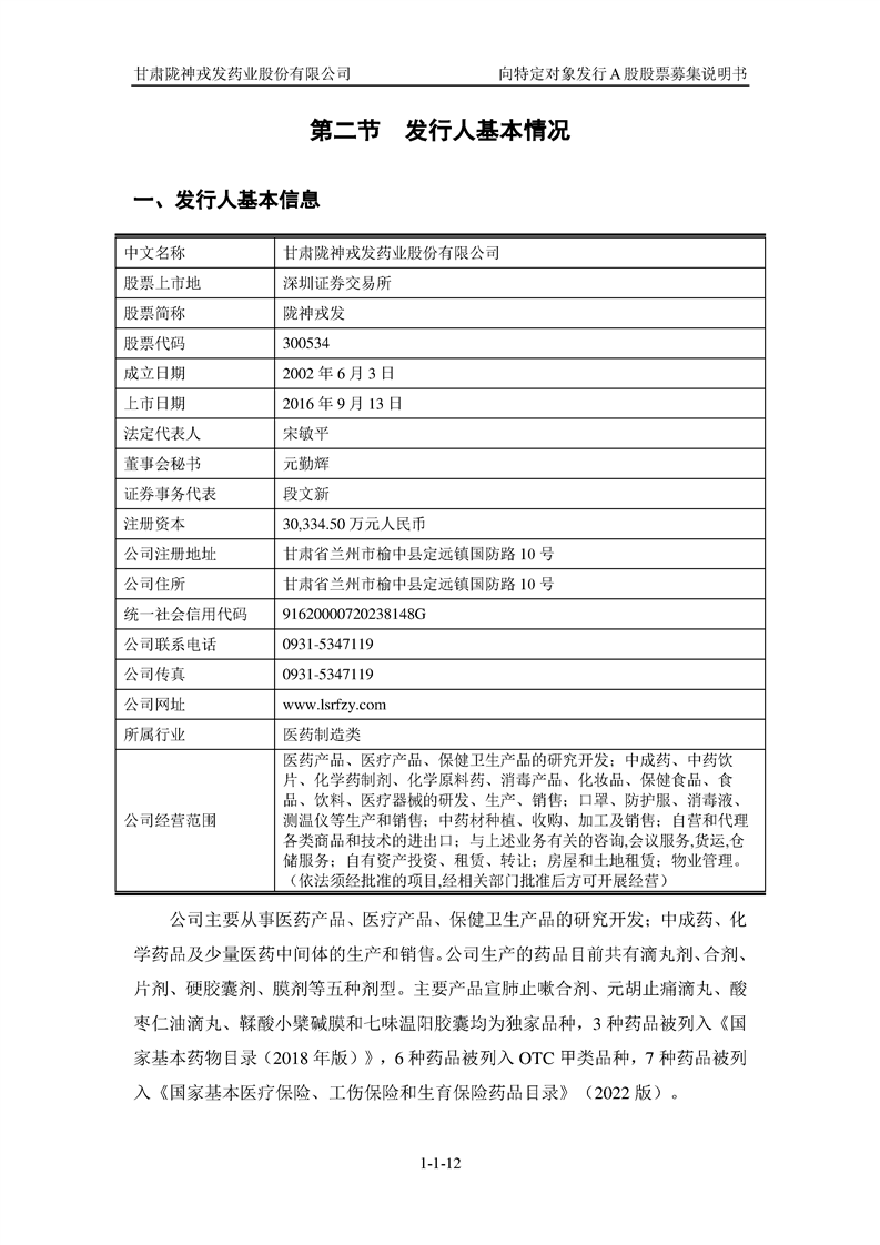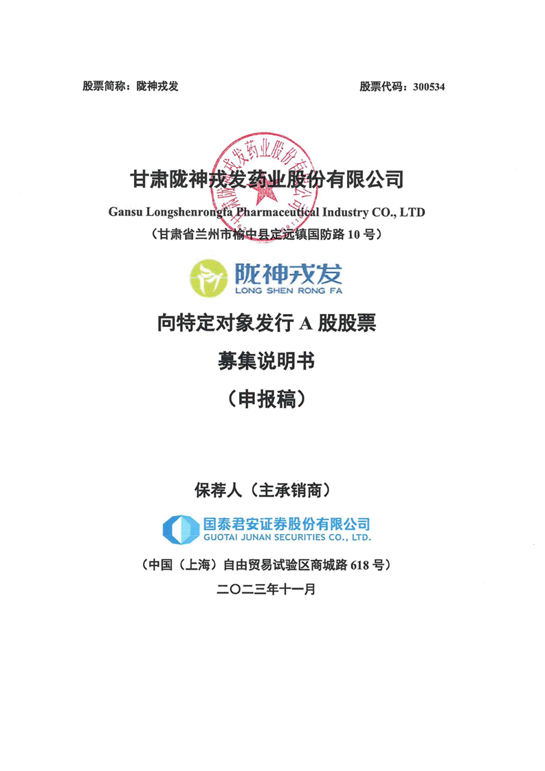 甘肅隴神戎發(fā)藥業(yè)股份有限公司向特定對(duì)象發(fā)行A股股票募集說(shuō)明書(申報(bào)稿)