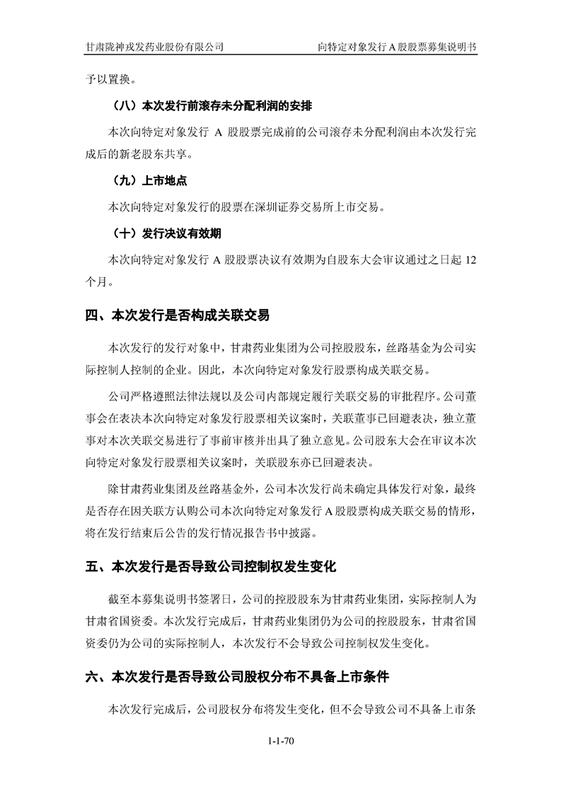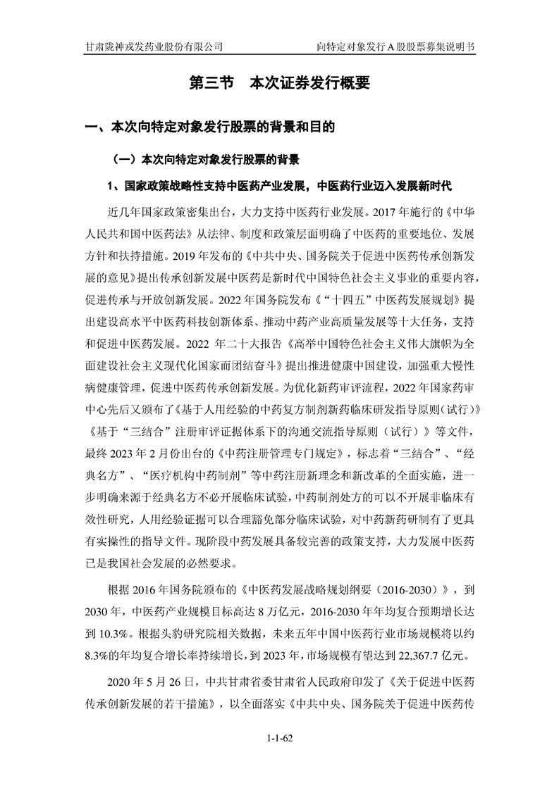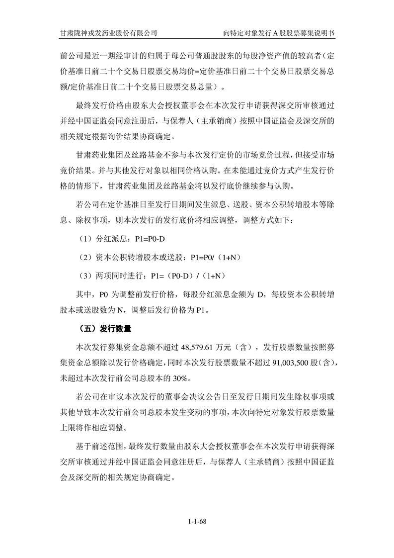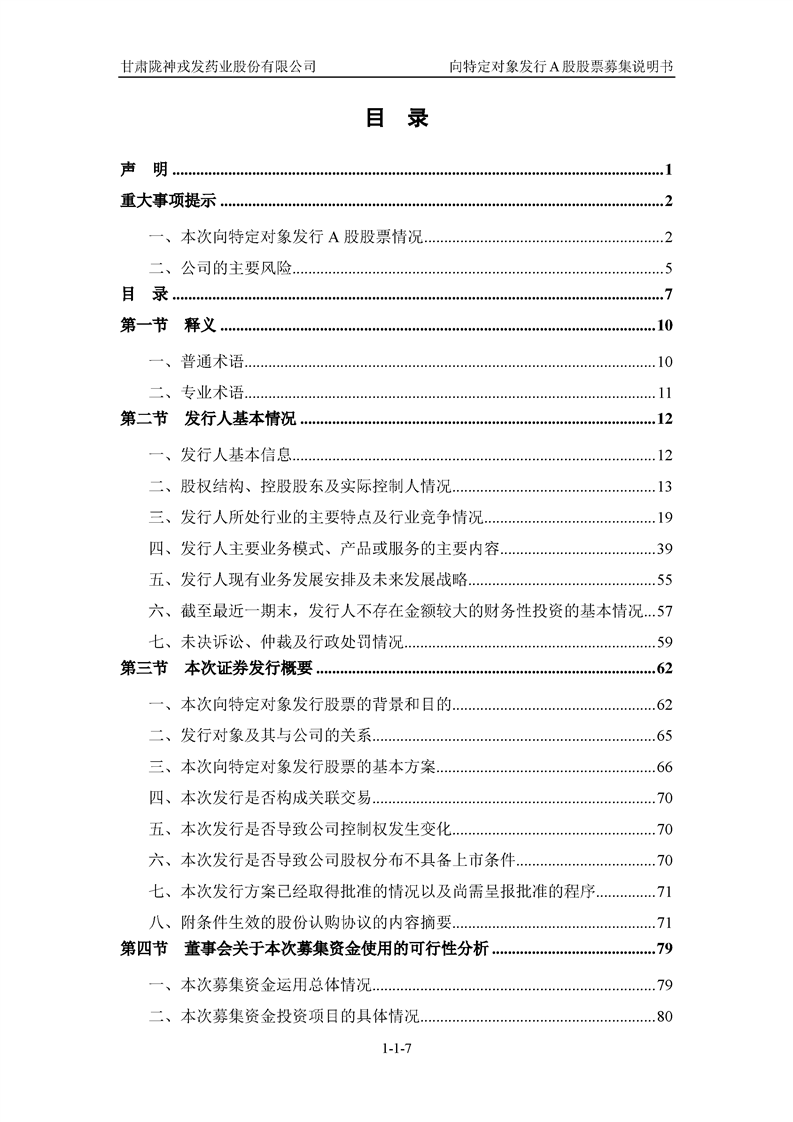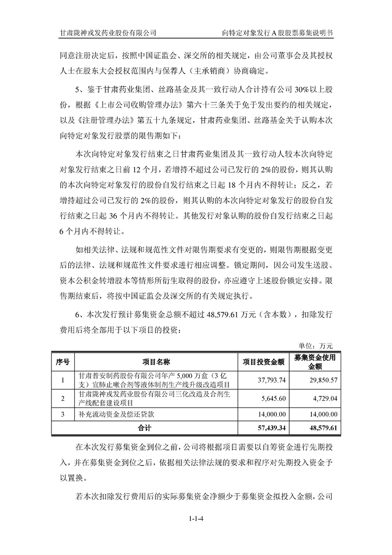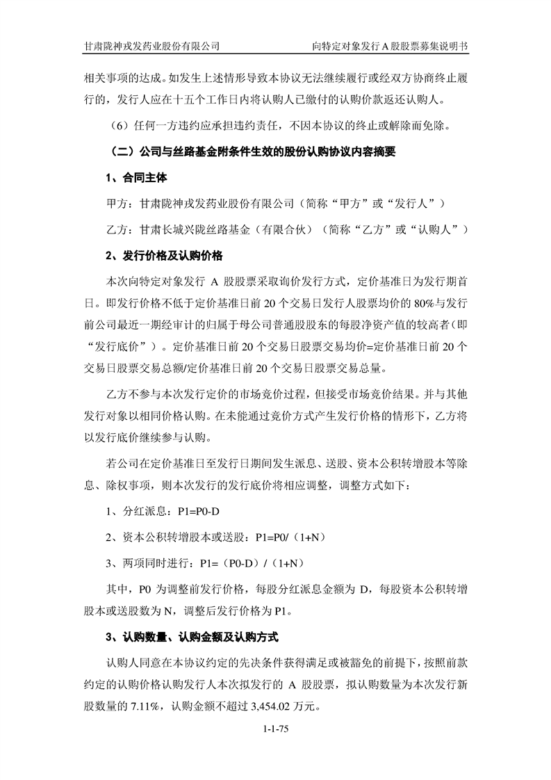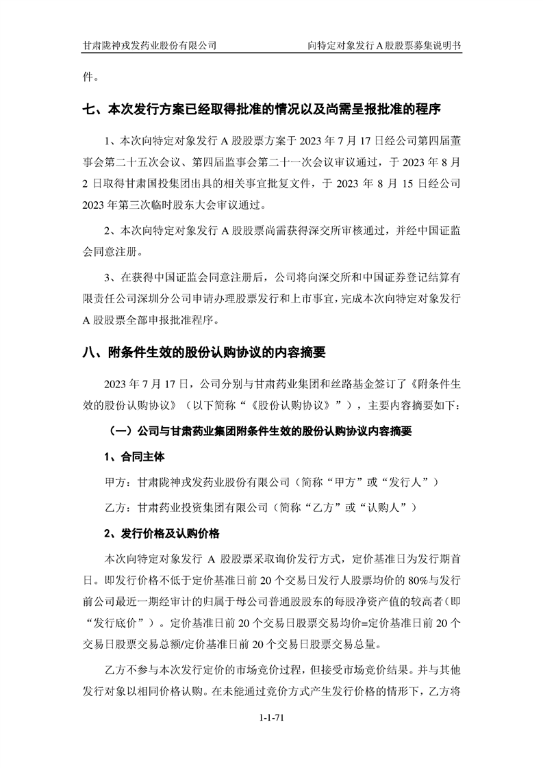 甘肅隴神戎發(fā)藥業(yè)股份有限公司向特定對(duì)象發(fā)行A股股票募集說(shuō)明書(申報(bào)稿)