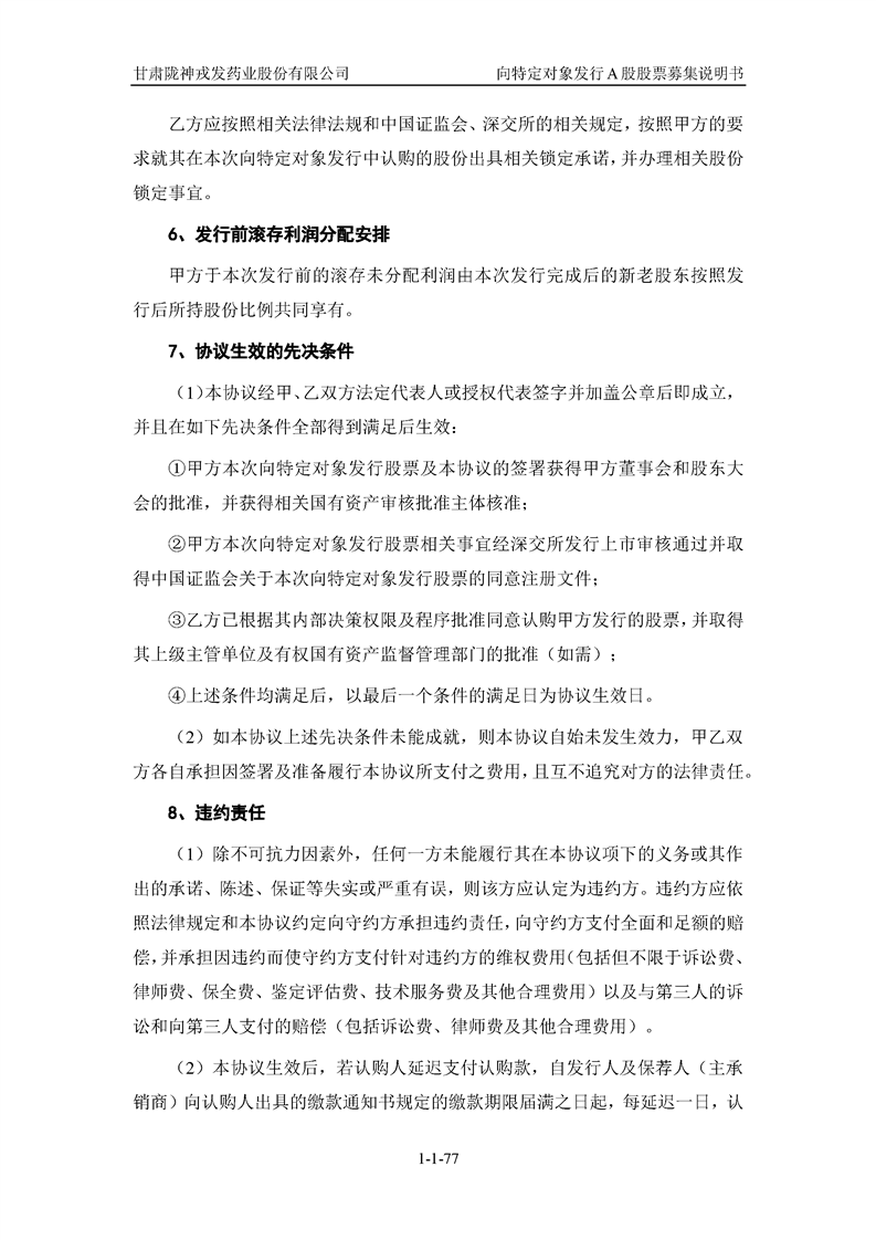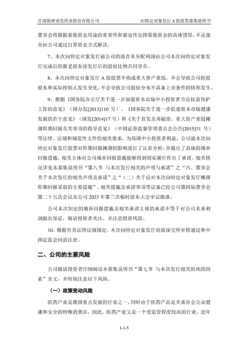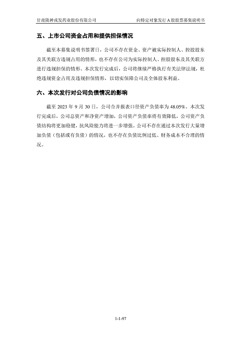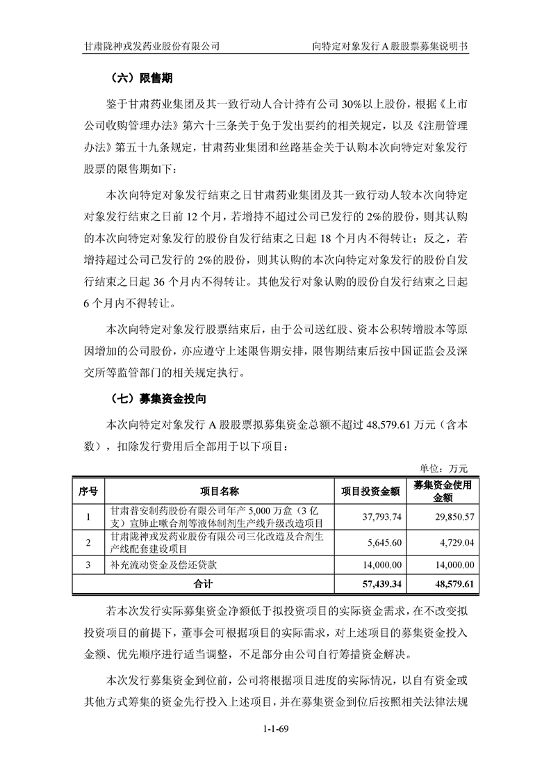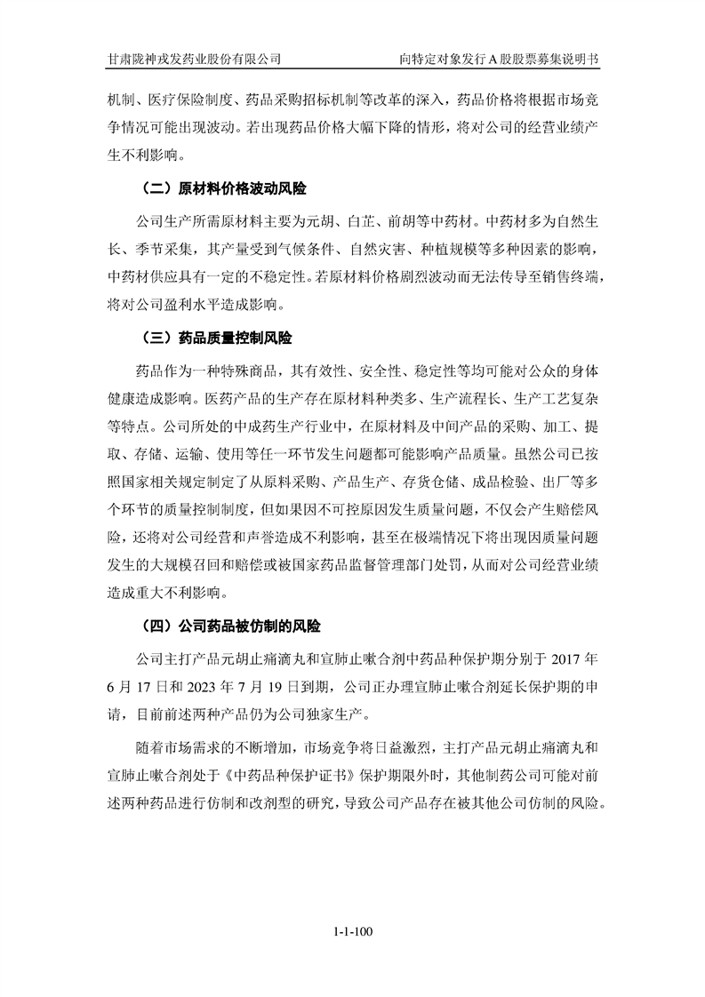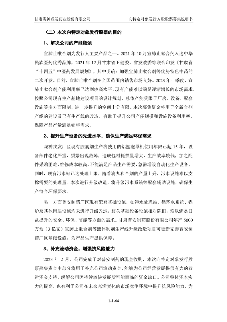 甘肅隴神戎發(fā)藥業(yè)股份有限公司向特定對(duì)象發(fā)行A股股票募集說(shuō)明書(申報(bào)稿)