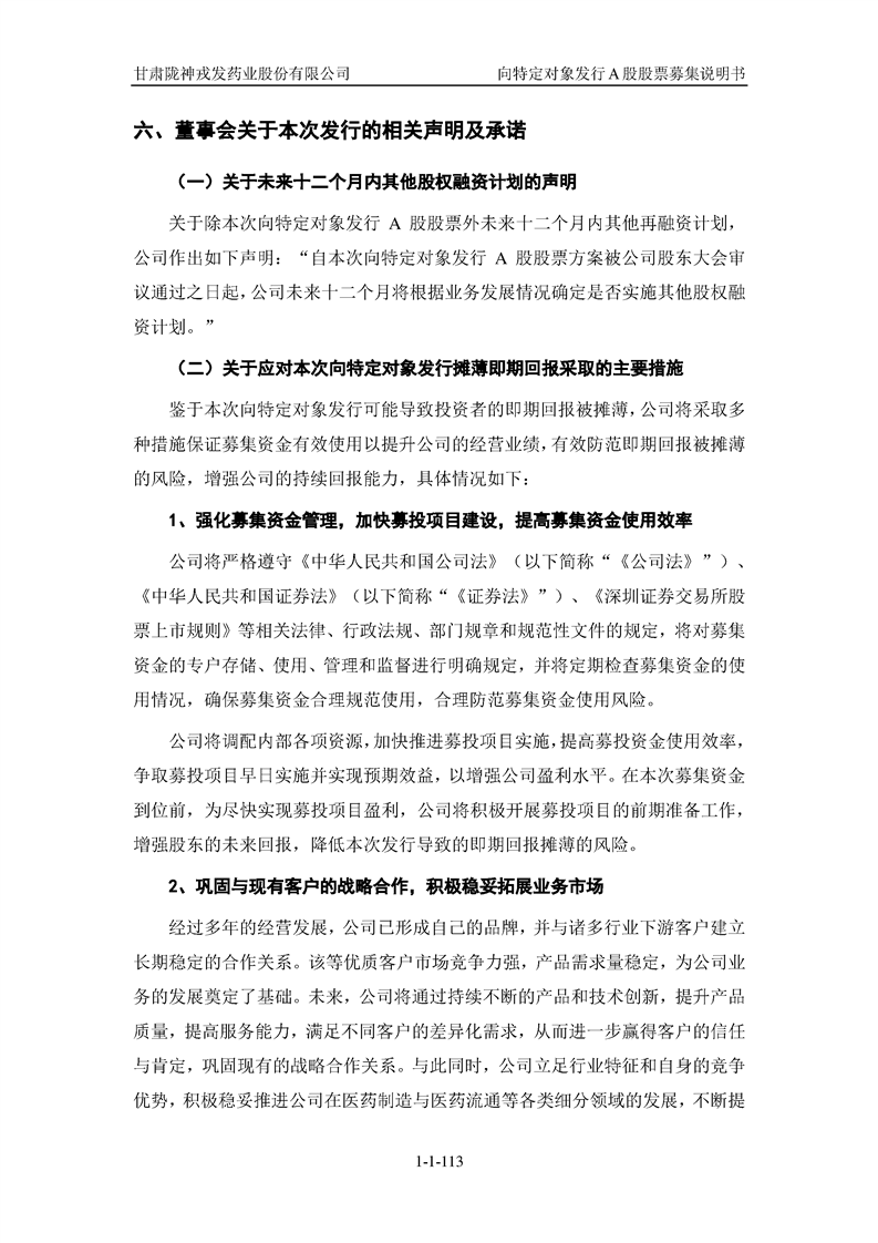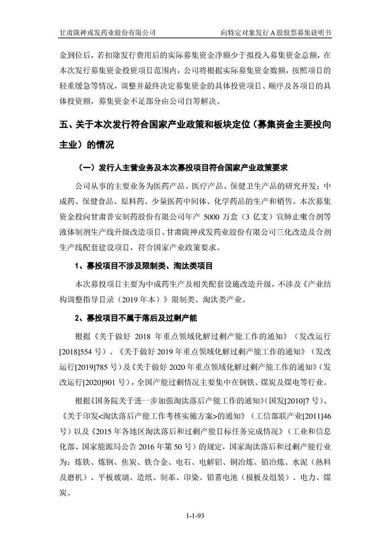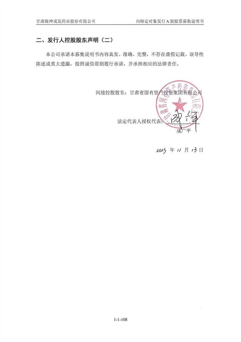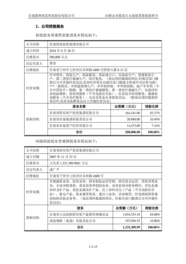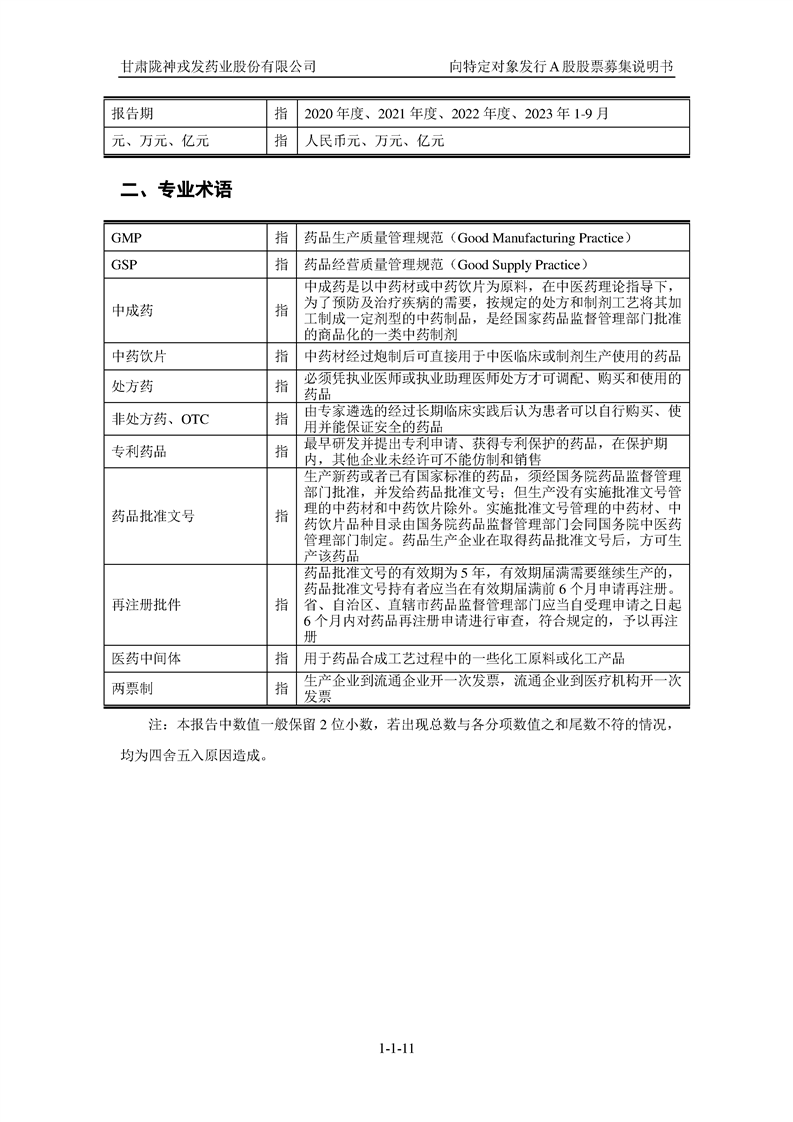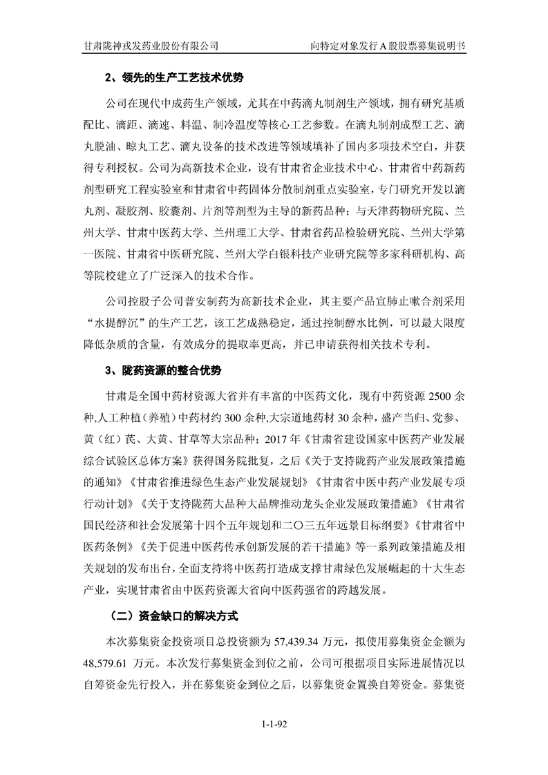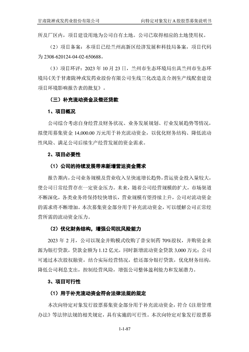 甘肅隴神戎發(fā)藥業(yè)股份有限公司向特定對(duì)象發(fā)行A股股票募集說(shuō)明書(申報(bào)稿)