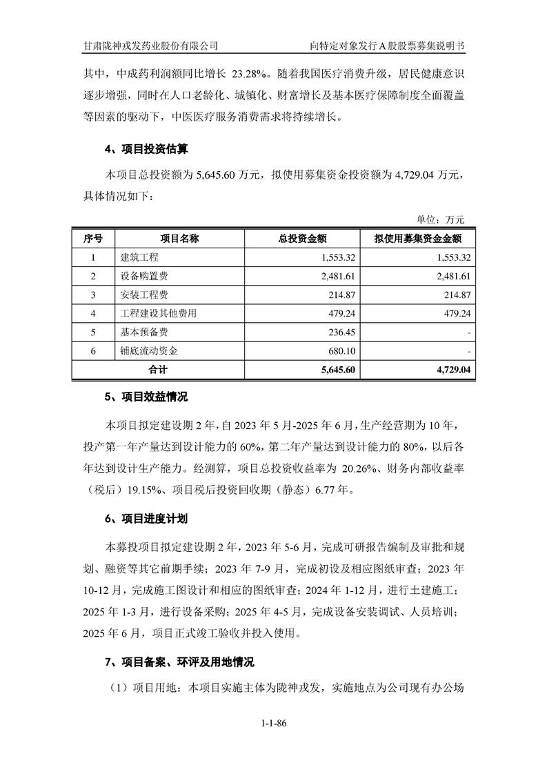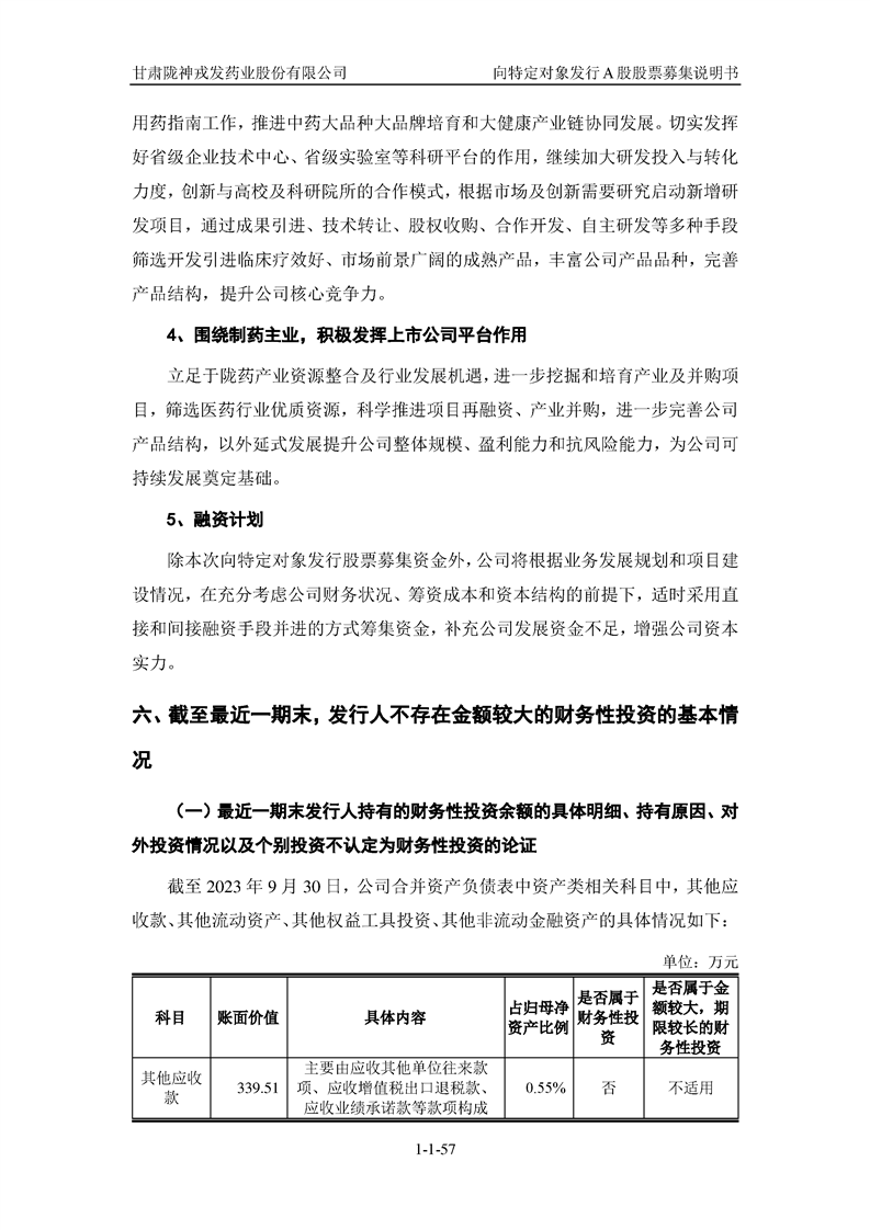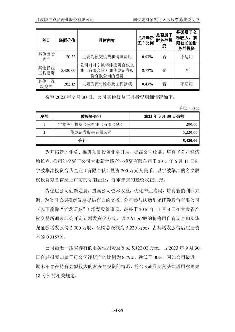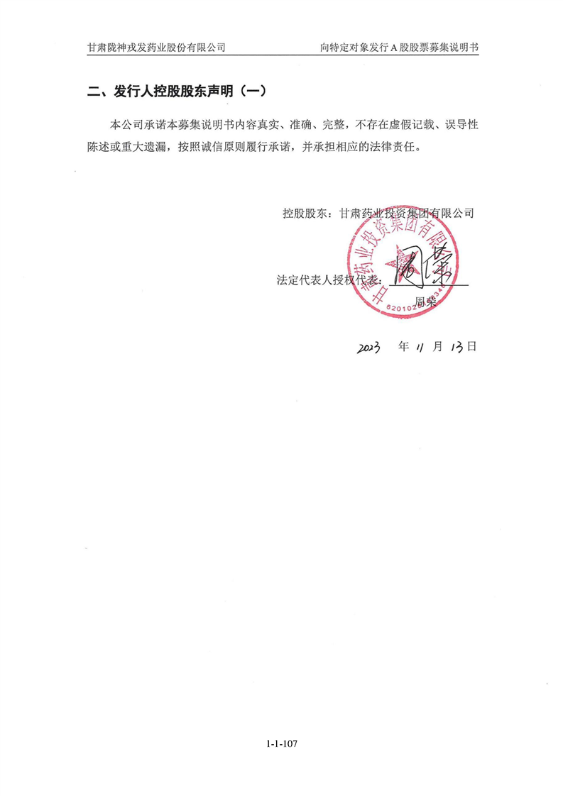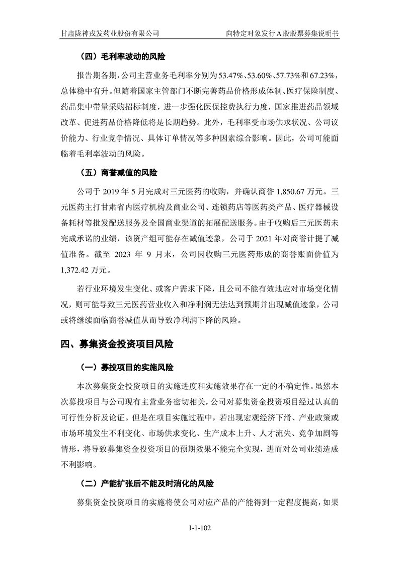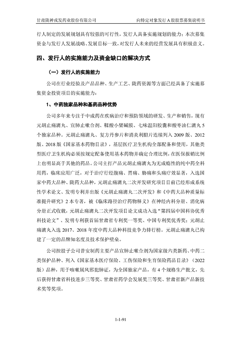 甘肅隴神戎發(fā)藥業(yè)股份有限公司向特定對(duì)象發(fā)行A股股票募集說(shuō)明書(申報(bào)稿)