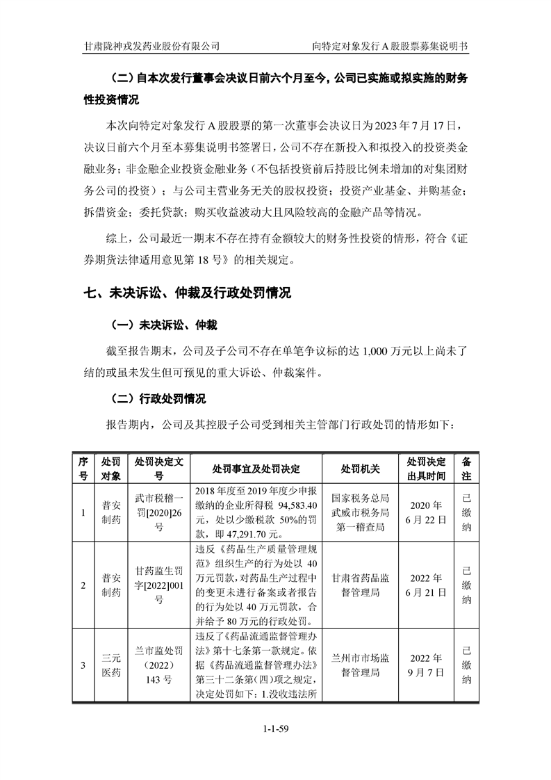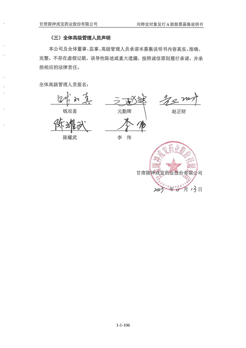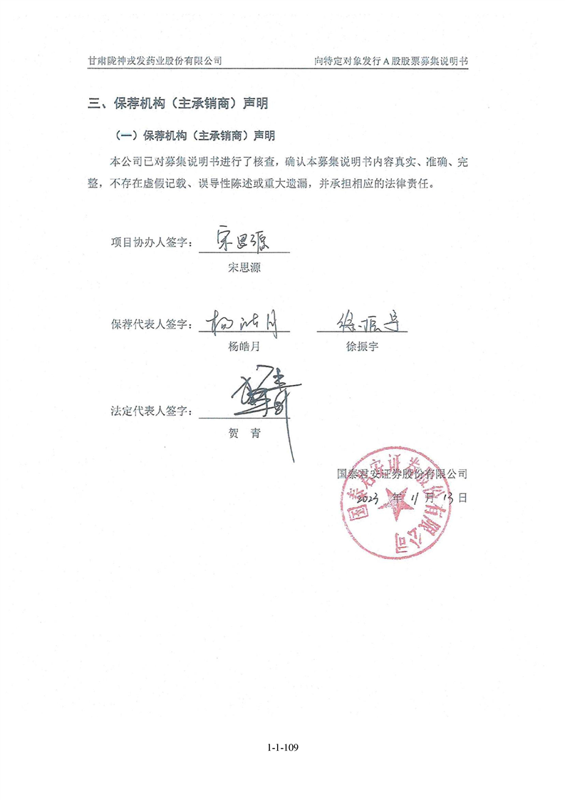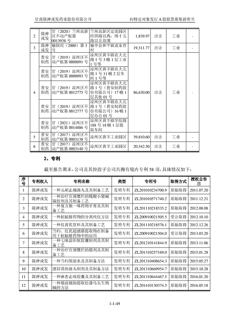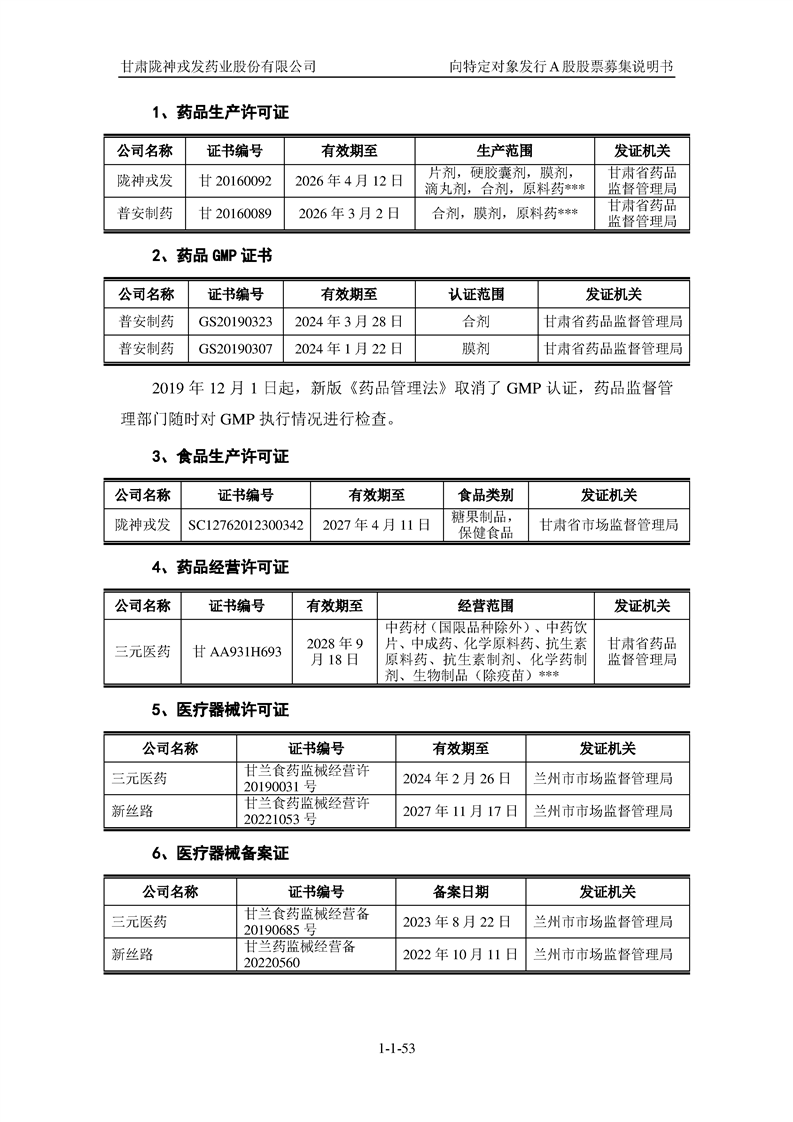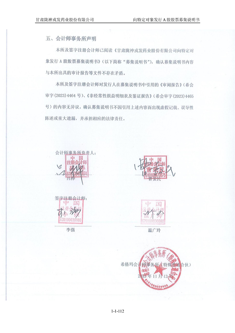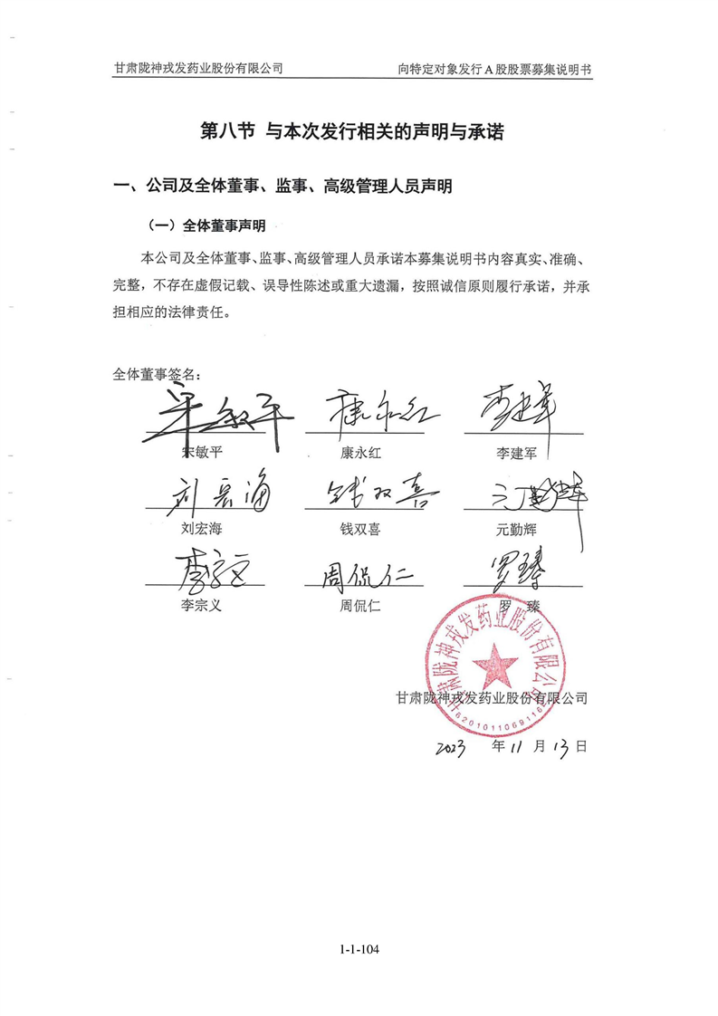 甘肅隴神戎發(fā)藥業(yè)股份有限公司向特定對(duì)象發(fā)行A股股票募集說(shuō)明書(申報(bào)稿)