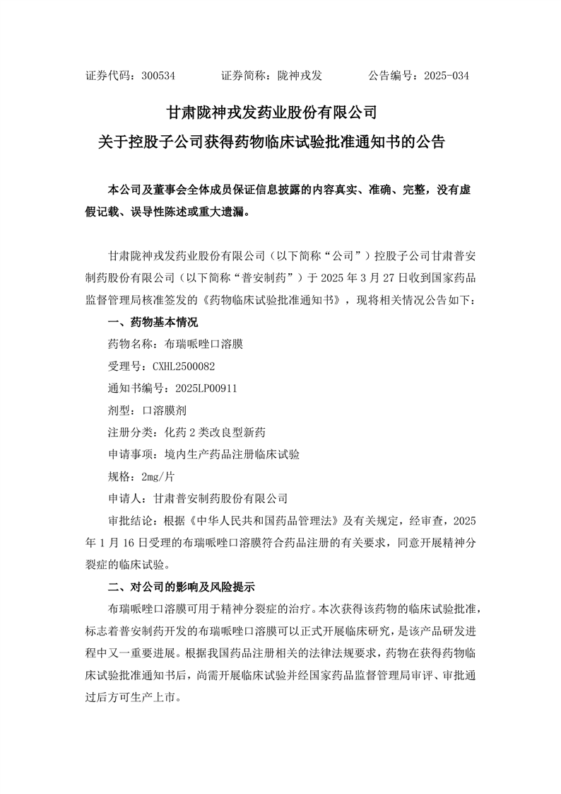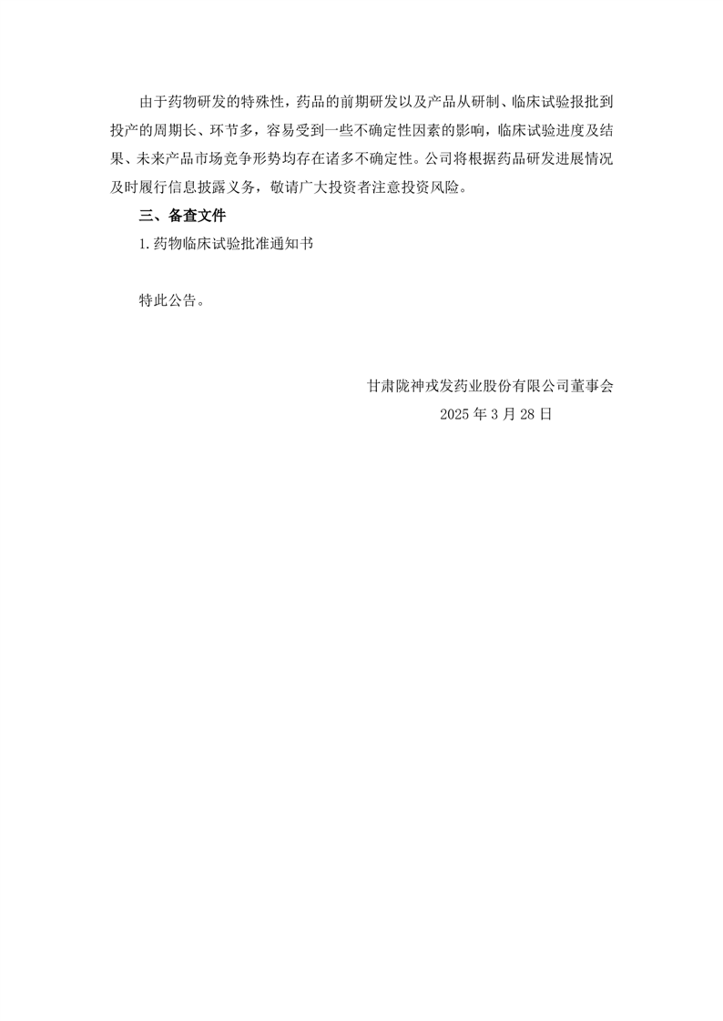 關于控股子公司獲得藥物臨床試驗批準通知書的公告