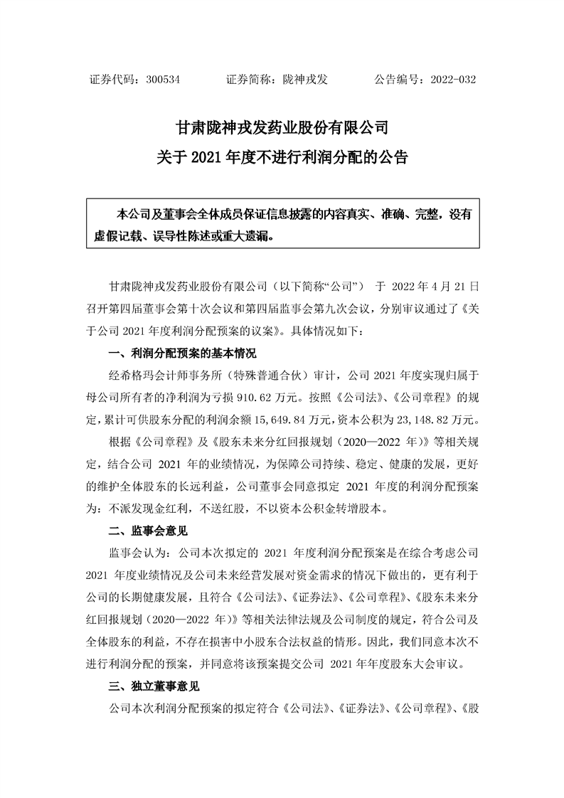 關(guān)于2021年度不進(jìn)行利潤(rùn)分配的公告