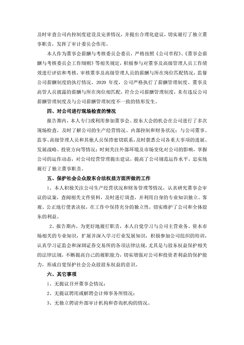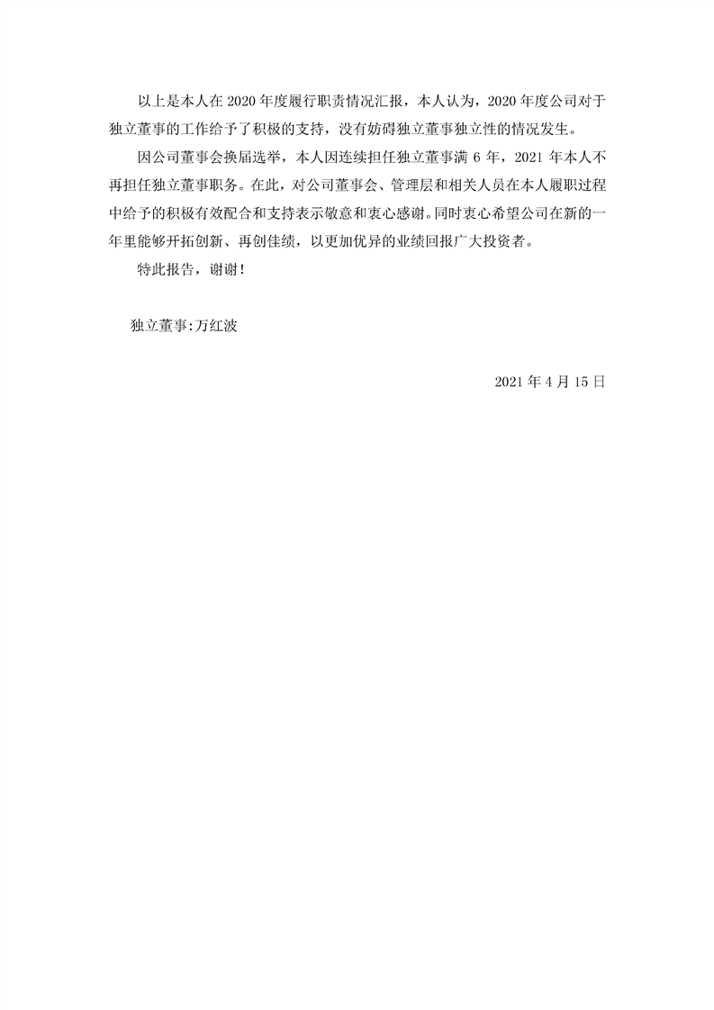 2020年獨(dú)立董事述職報(bào)告(萬紅波)