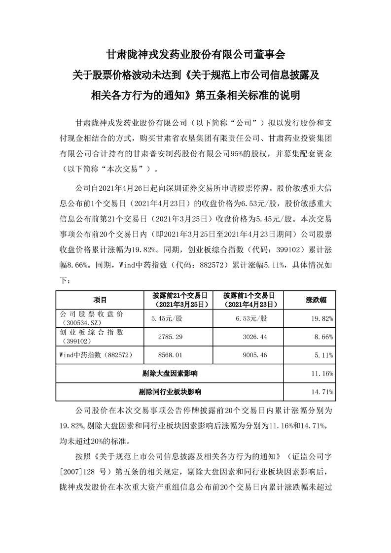 董事會關于股票價格波動未達到《關于規(guī)范上市公司信息披露及相關各方行為的通知》第五條相關標準的說明