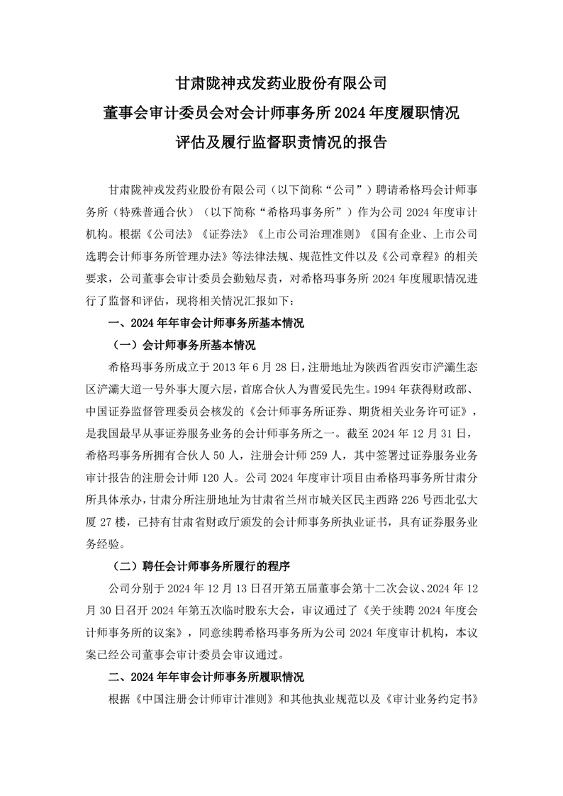 董事會審計委員會對會計師事務(wù)所2024年度履職情況評估及履行監(jiān)督職責(zé)情況的報告