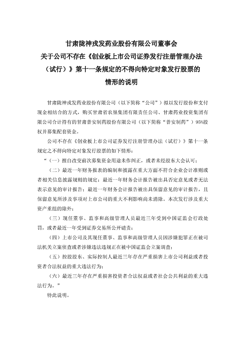 董事會(huì)關(guān)于公司不存在《創(chuàng)業(yè)板上市公司證券發(fā)行注冊(cè)管理辦法(試行)》第十一條規(guī)定的不得向特定對(duì)象發(fā)行股票的情形的說明