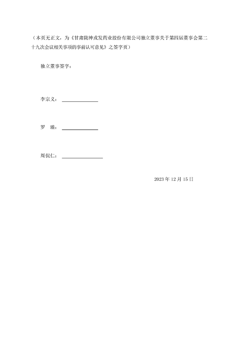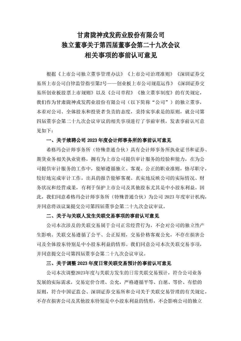 獨立董事關于第四屆董事會第二十九次會議相關事項的事前認可意見