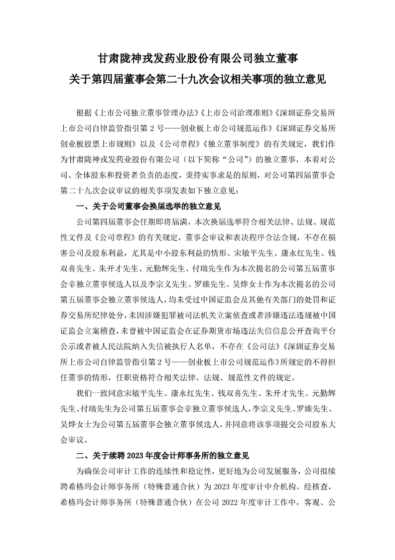 獨(dú)立董事關(guān)于第四屆董事會(huì)第二十九次會(huì)議相關(guān)事項(xiàng)的獨(dú)立意見