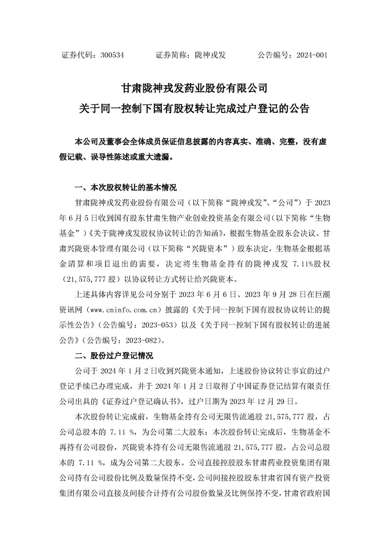 關(guān)于同一控制下國(guó)有股權(quán)轉(zhuǎn)讓完成過(guò)戶登記的公告