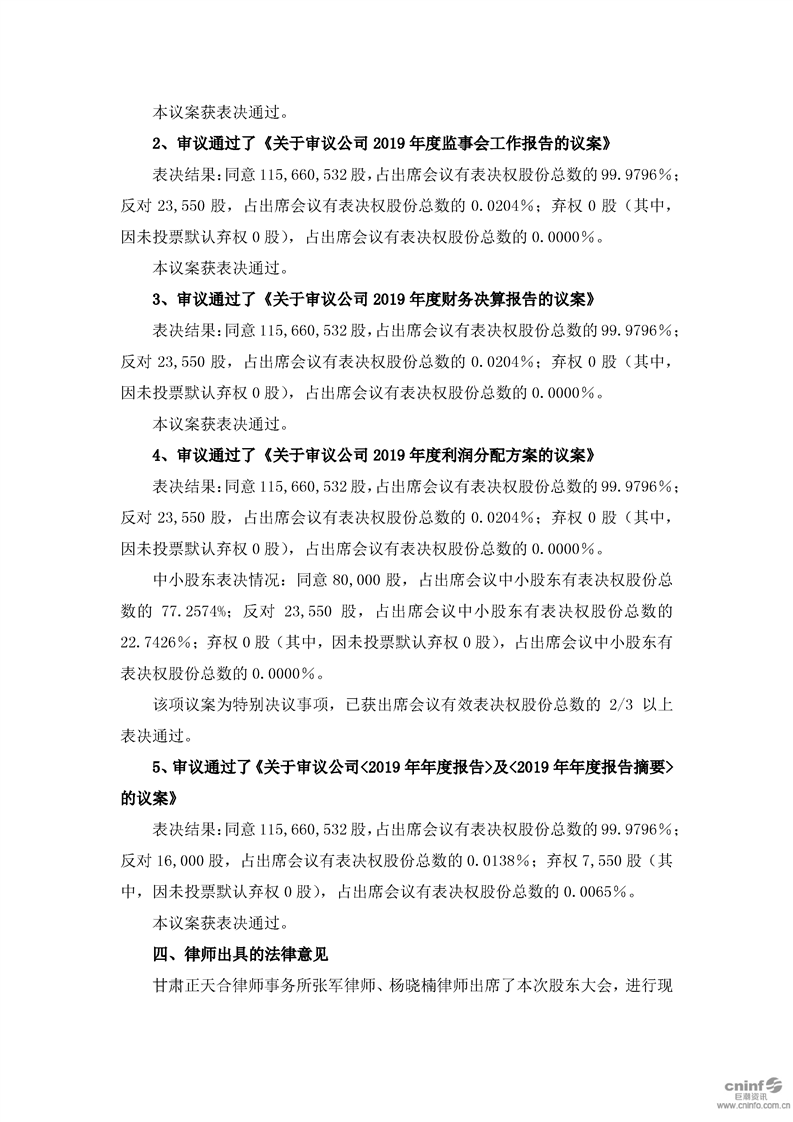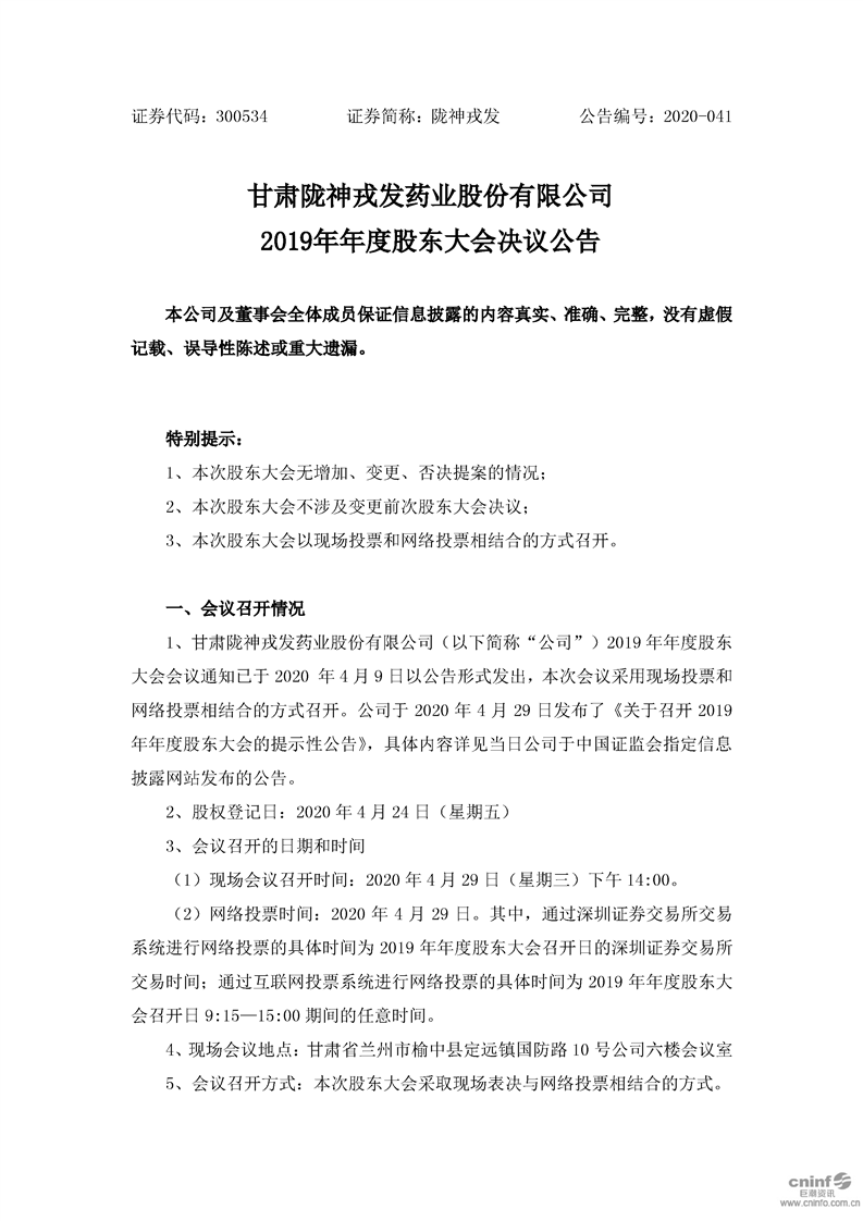 2019年年度股東大會決議公告