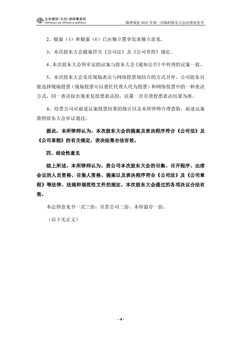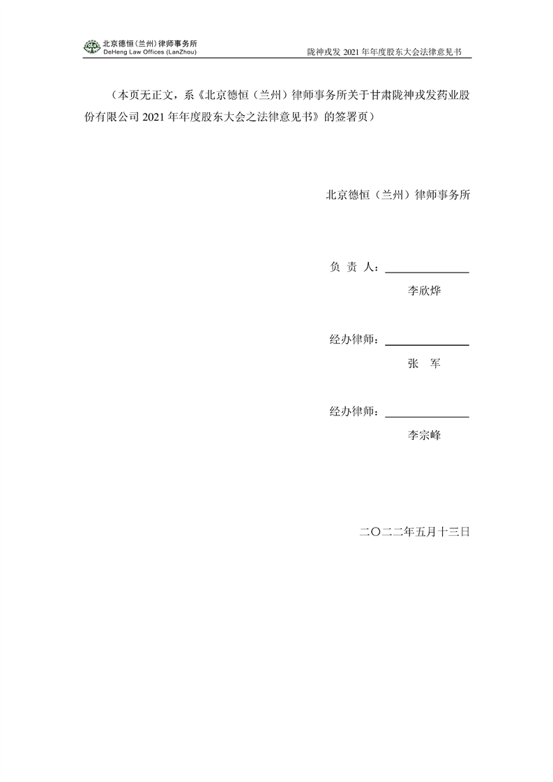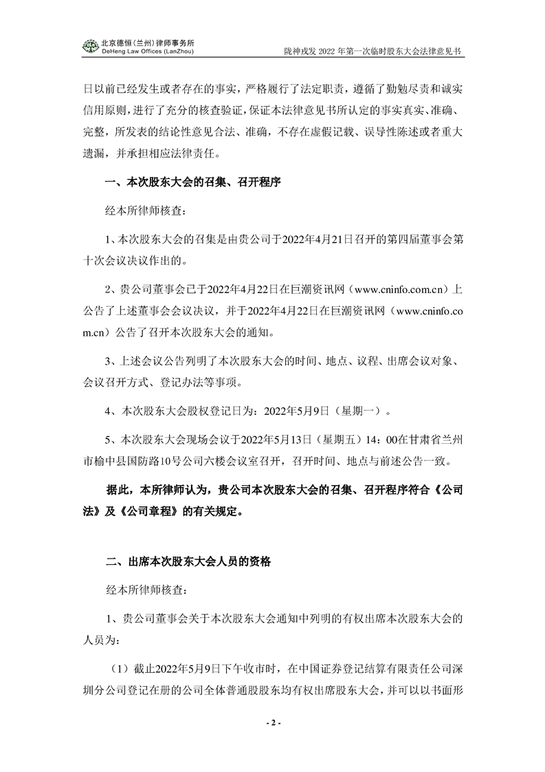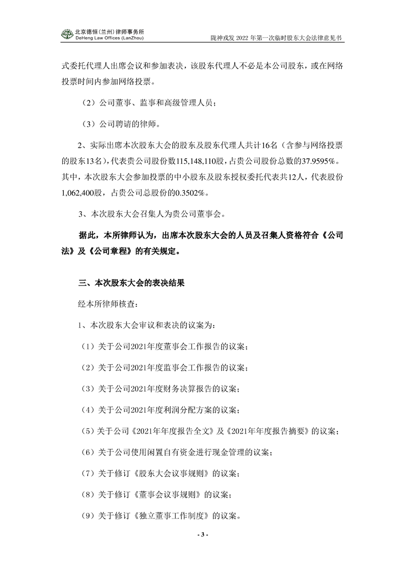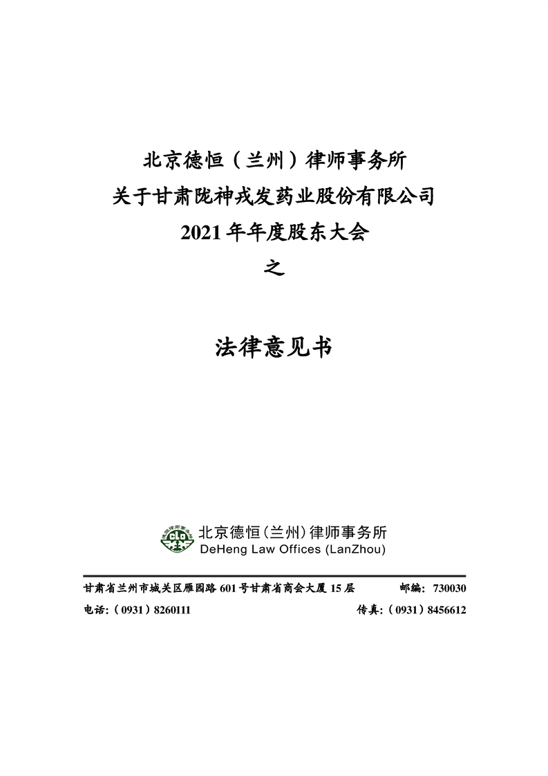 隴神戎發(fā)2021年年度股東大會(huì)法律意見書