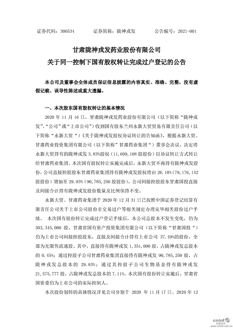 關(guān)于同一控制下國(guó)有股權(quán)轉(zhuǎn)讓完成過(guò)戶登記的公告