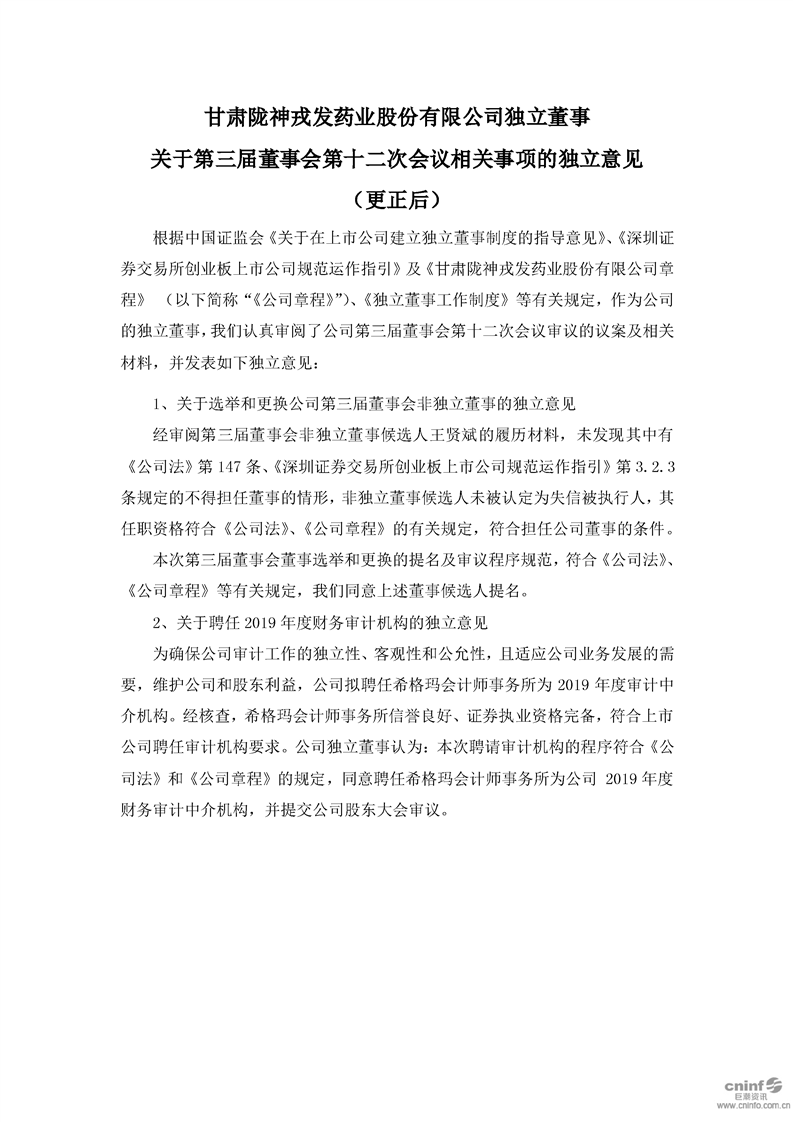獨(dú)立董事關(guān)于第三屆董事會(huì)第十二次會(huì)議相關(guān)事項(xiàng)的獨(dú)立意見(jiàn)(更新后)