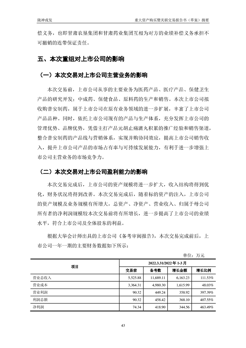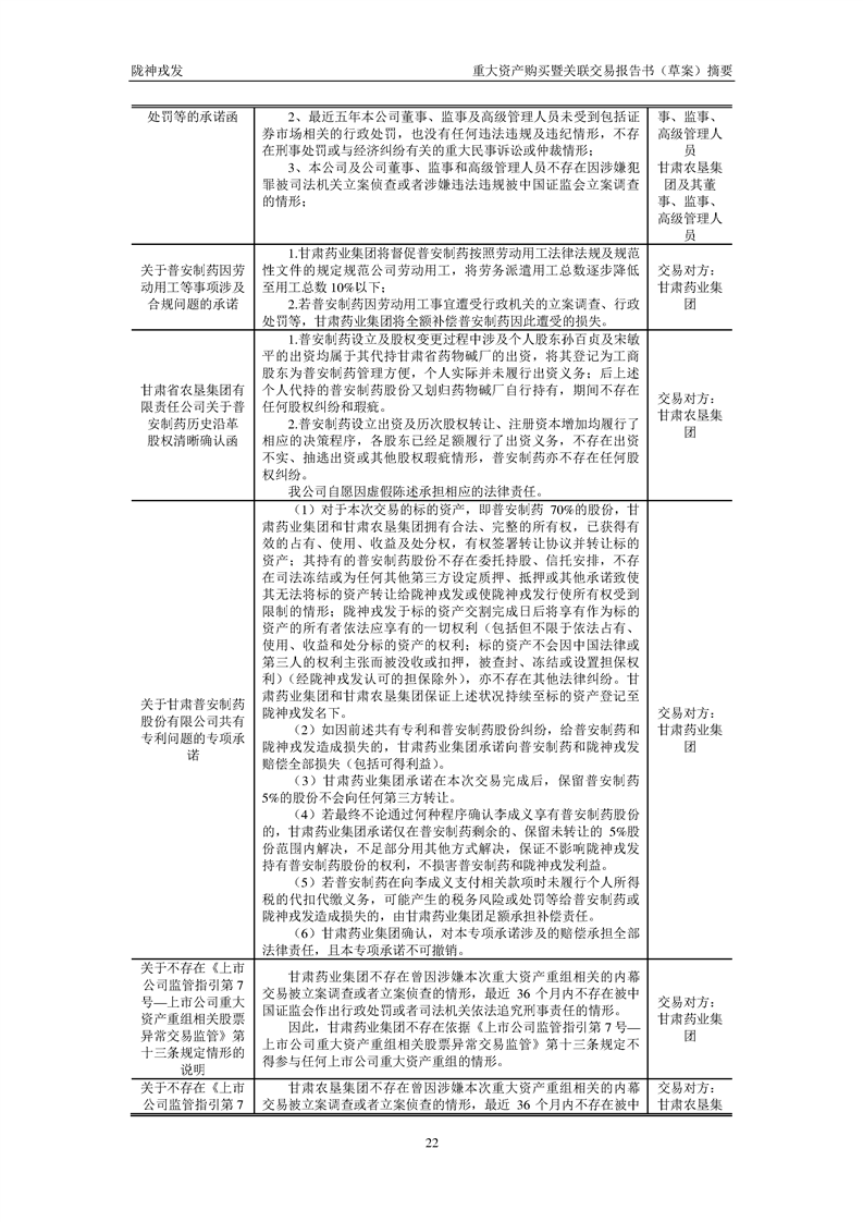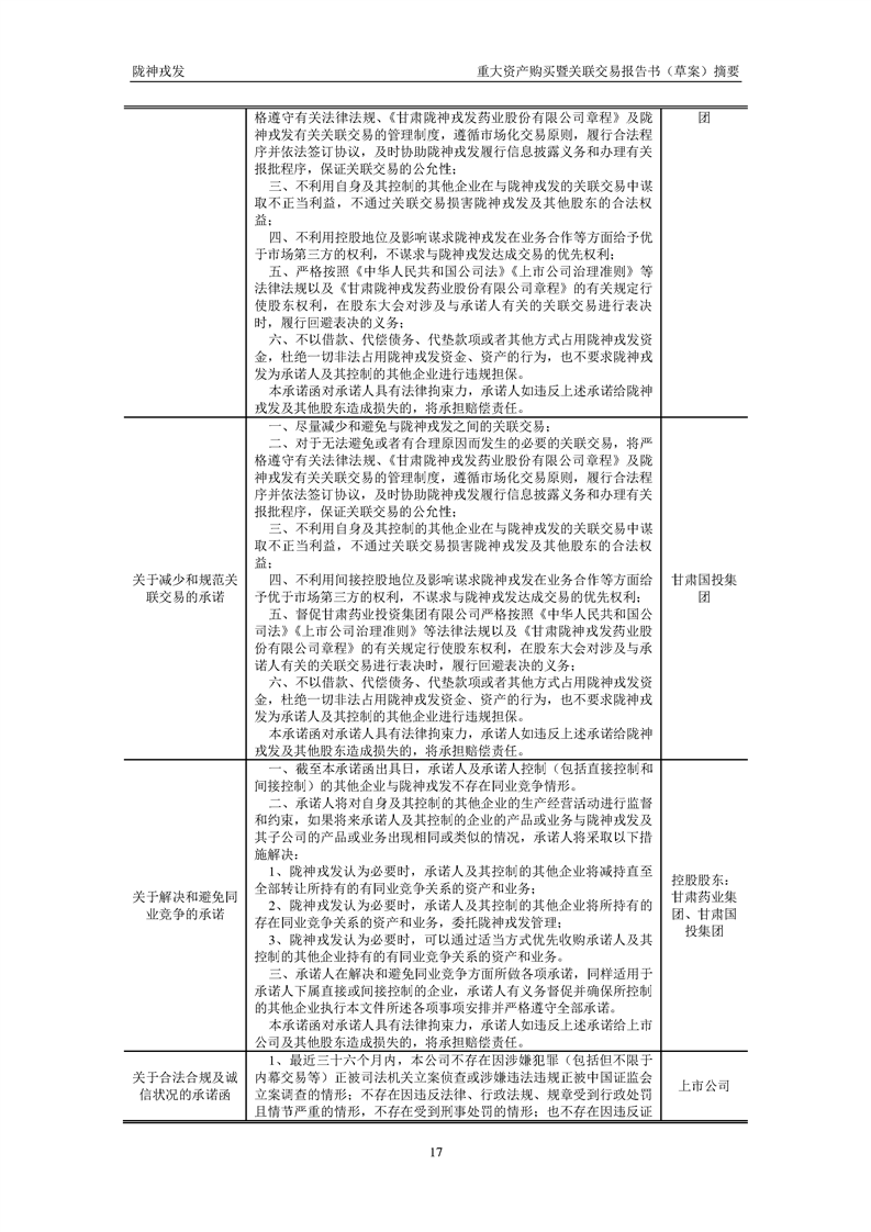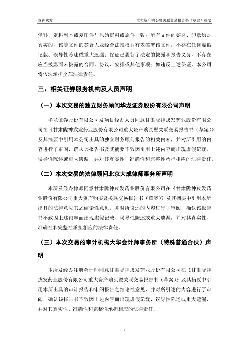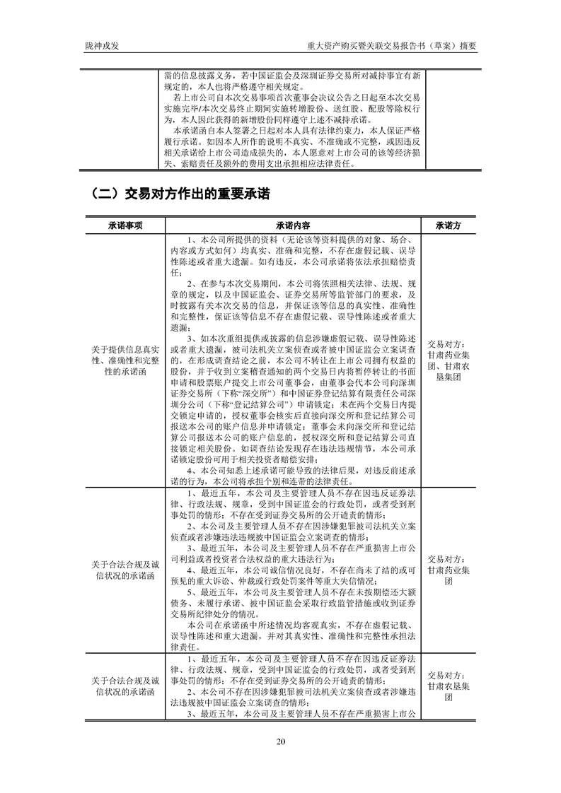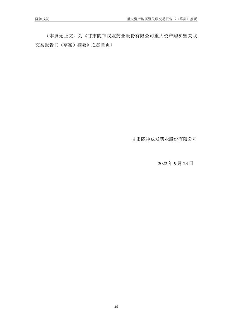 甘肅隴神戎發(fā)藥業(yè)股份有限公司重大資產(chǎn)購(gòu)買暨關(guān)聯(lián)交易報(bào)告書(草案)摘要