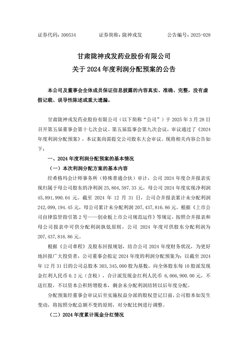 關(guān)于2024年度利潤(rùn)分配預(yù)案的公告