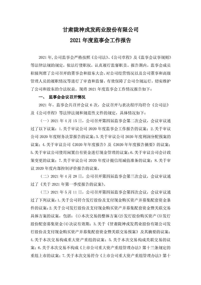 2021年度監(jiān)事會工作報告