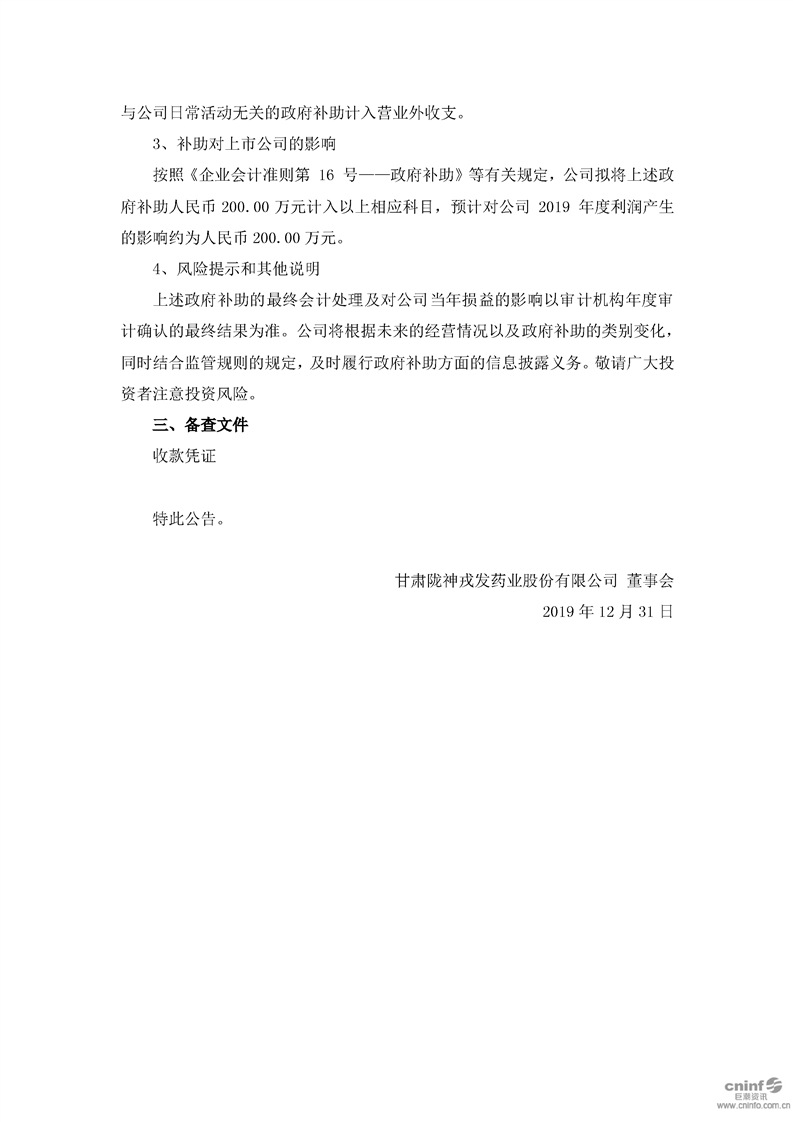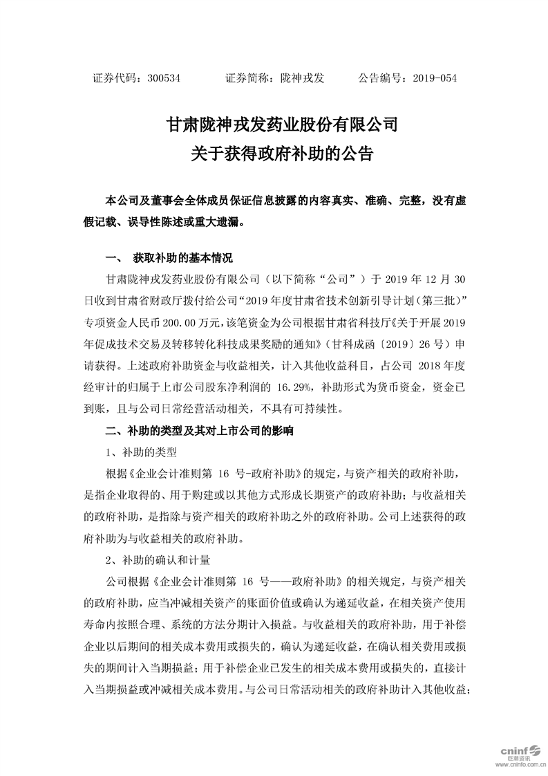 關(guān)于獲得政府補助的公告