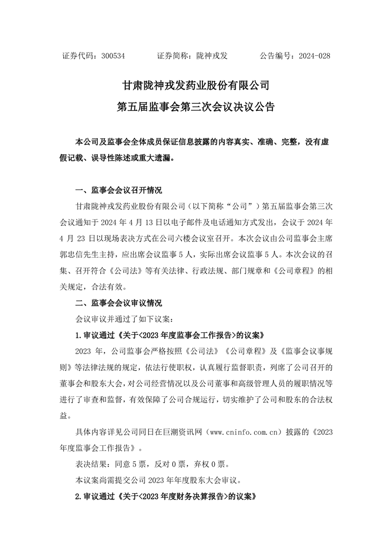 監(jiān)事會決議公告