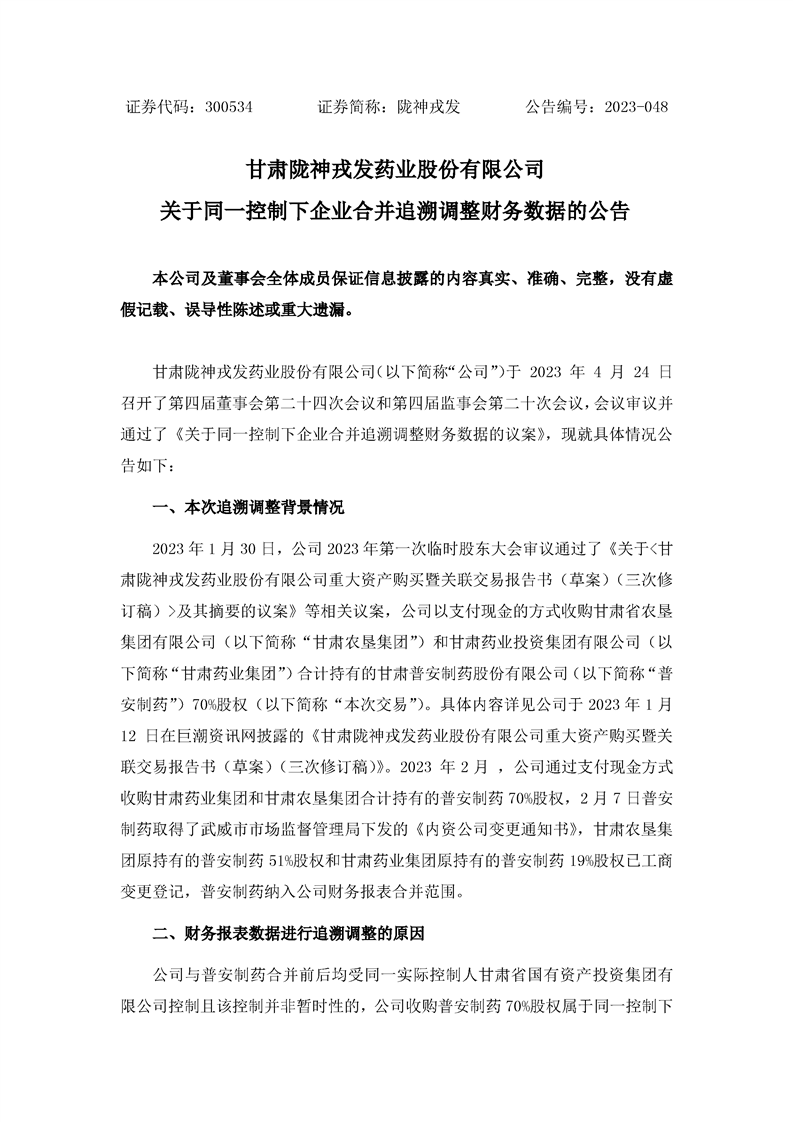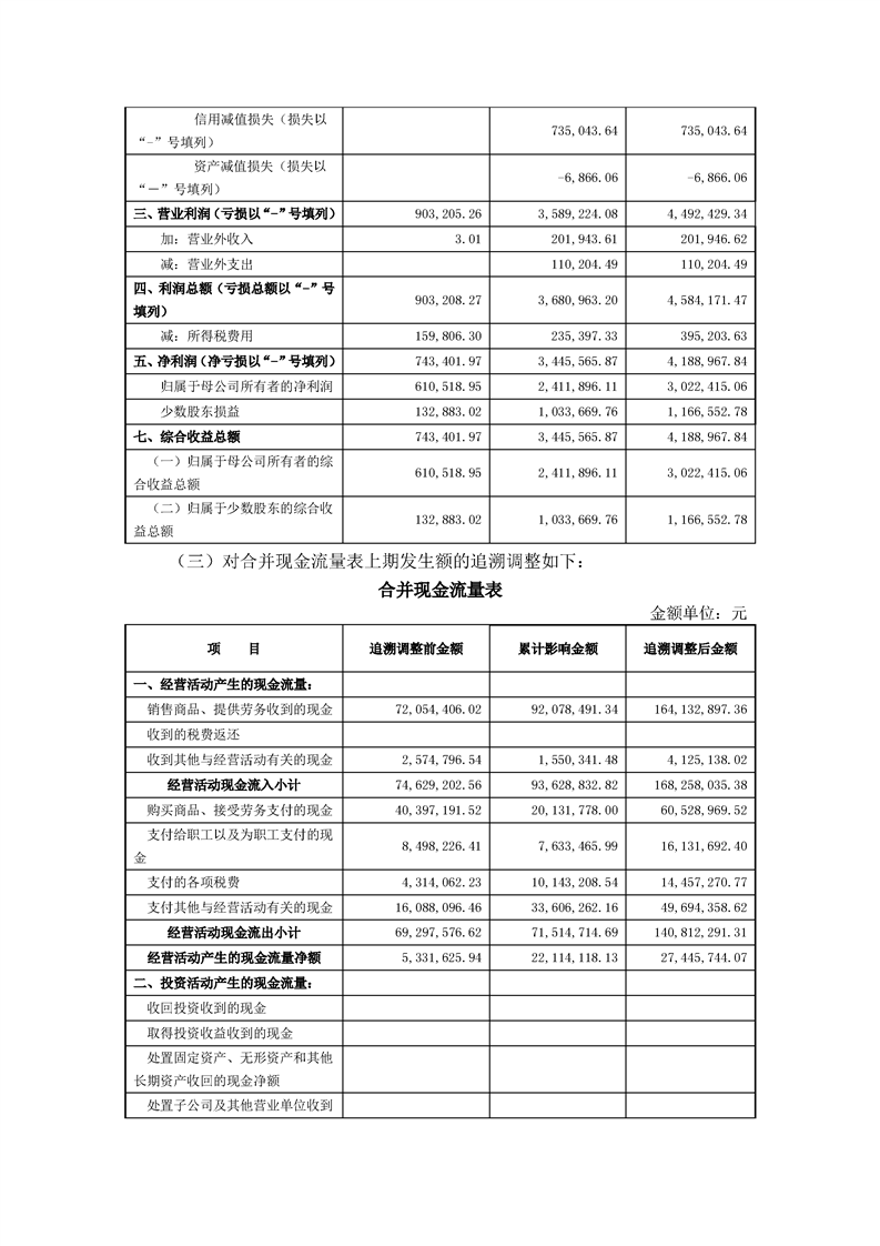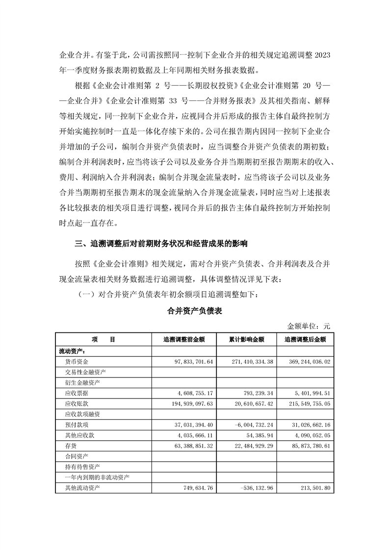 關(guān)于同一控下企業(yè)合并追溯調(diào)整財(cái)務(wù)數(shù)據(jù)的公告