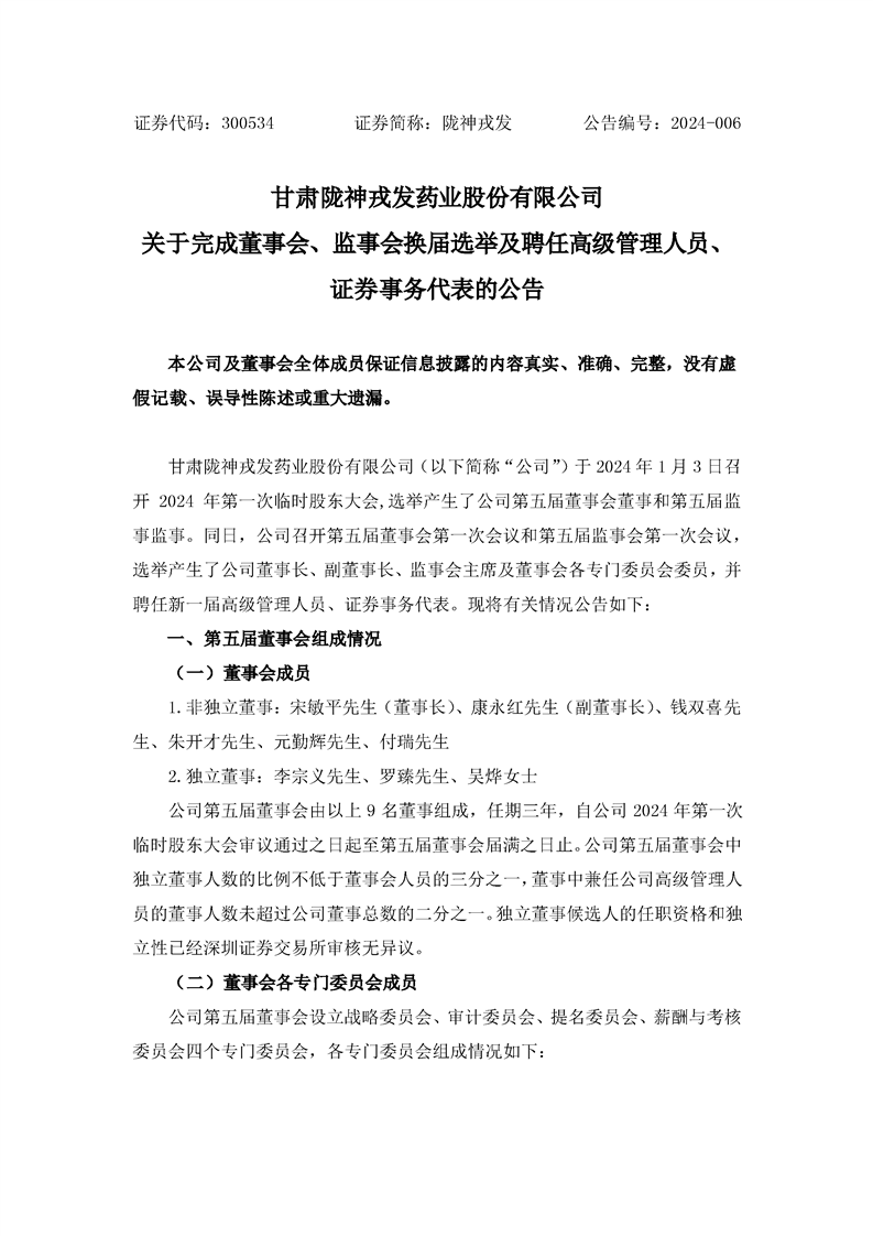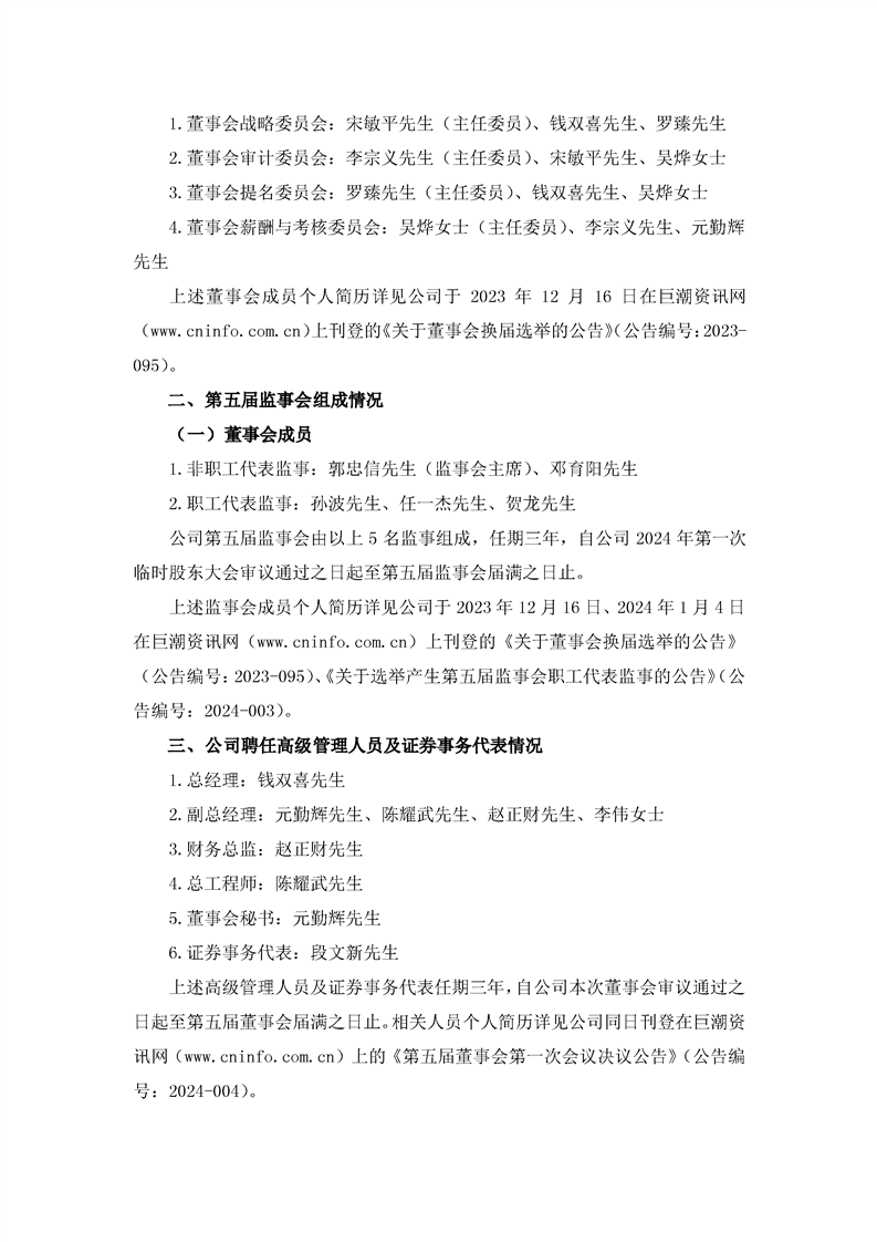 關(guān)于完成董事會、監(jiān)事會換屆選舉及聘任高級管理人員、證券事務(wù)代表的公告