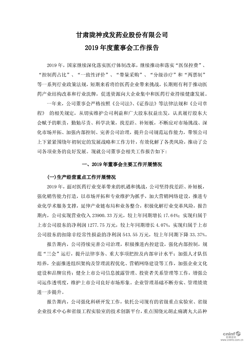 2019年度董事會工作報告