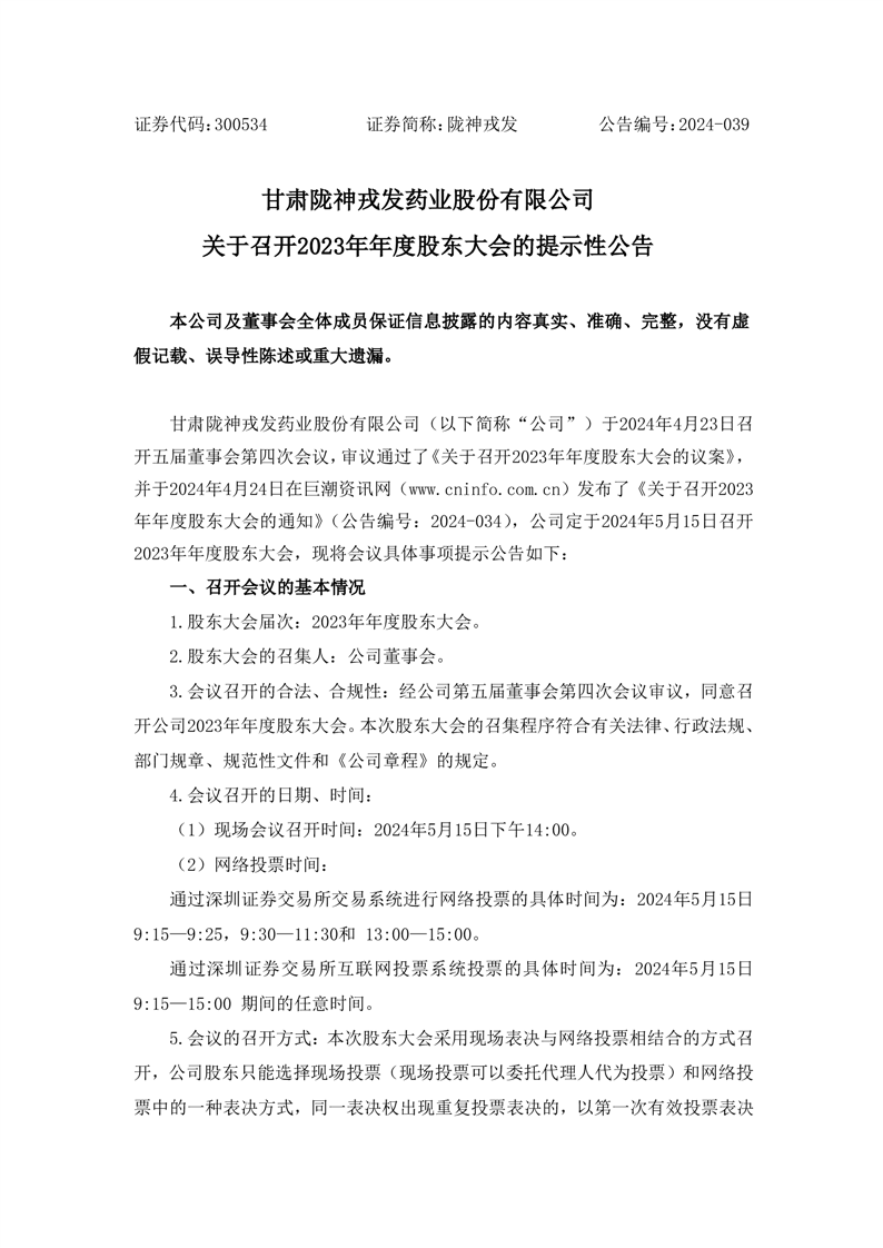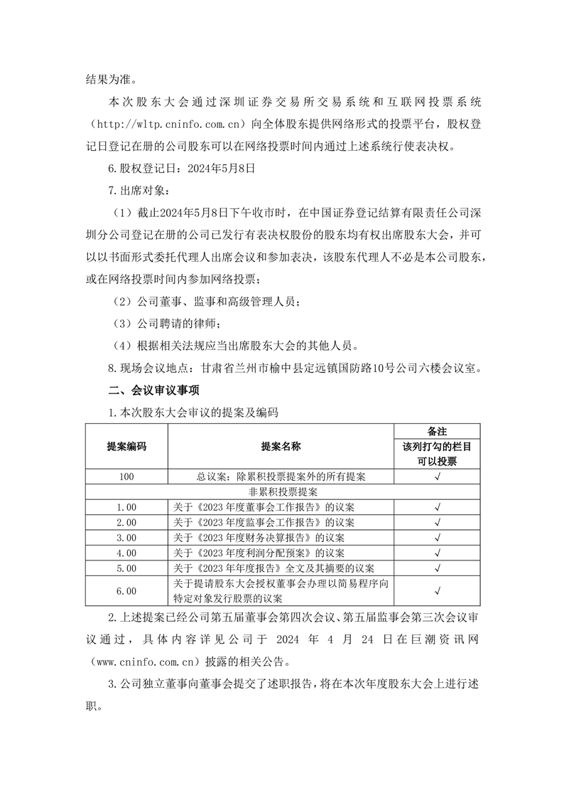 關(guān)于召開(kāi)2023年年度股東大會(huì)的提示性公告