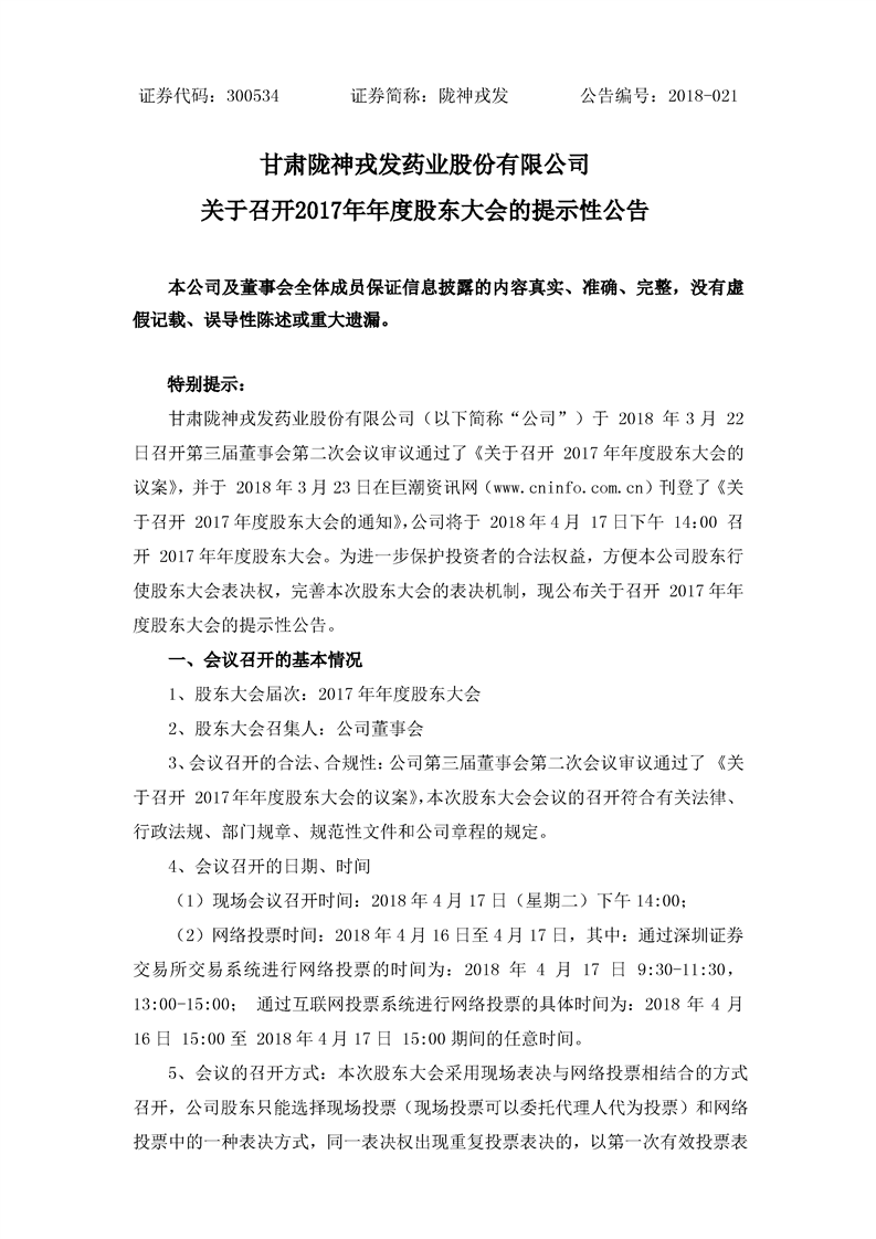 關(guān)于召開2017年年度股東大會(huì)的提示性公告