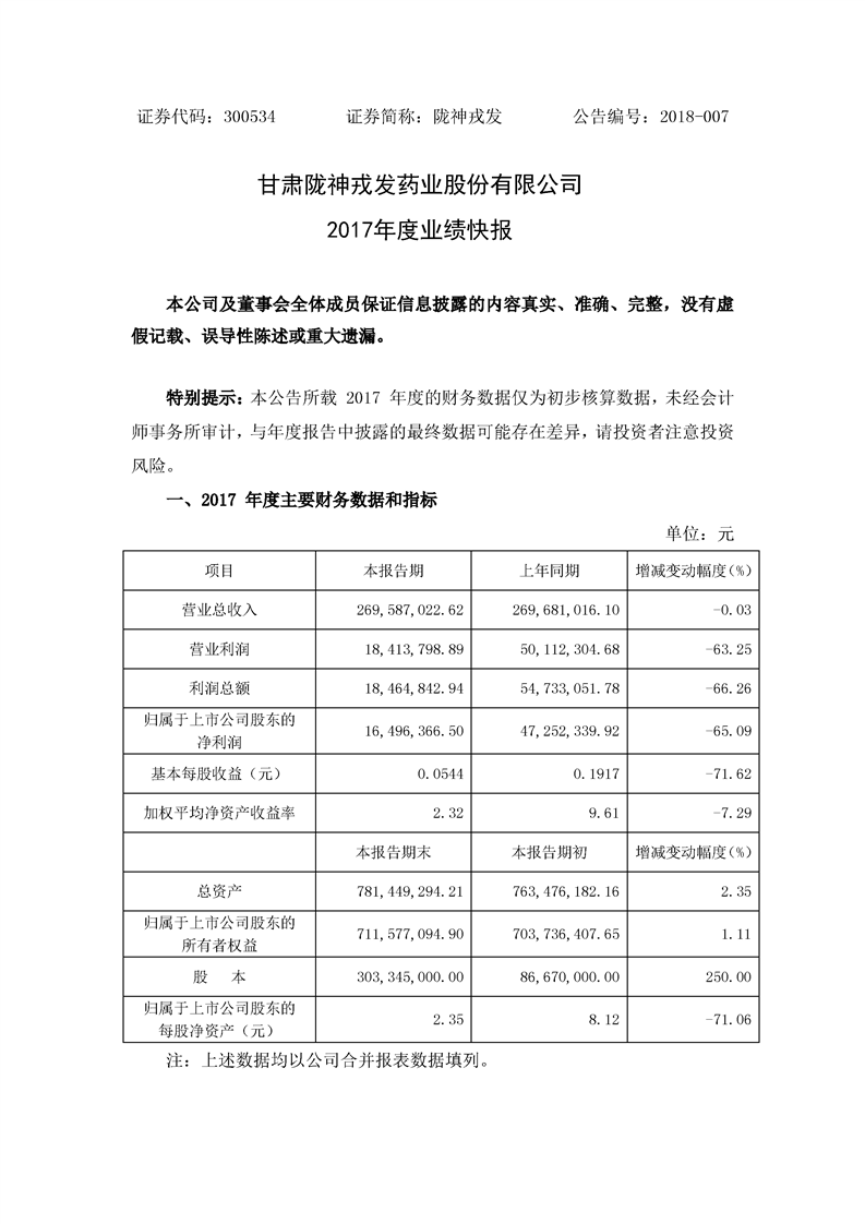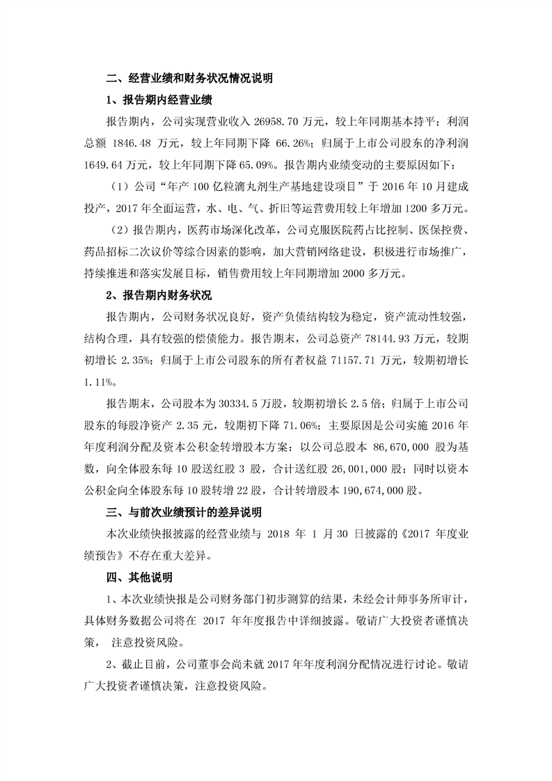 2017年度業(yè)績(jī)快報(bào)