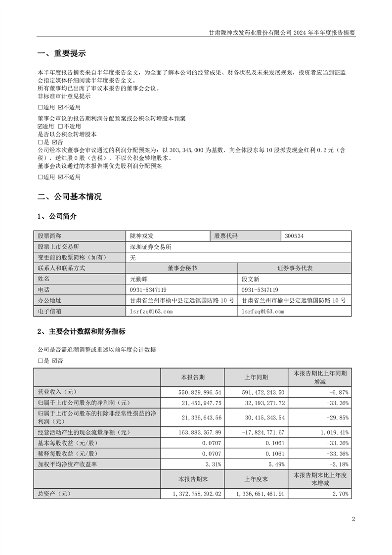 2024年半年度報告摘要