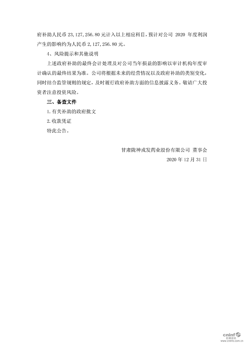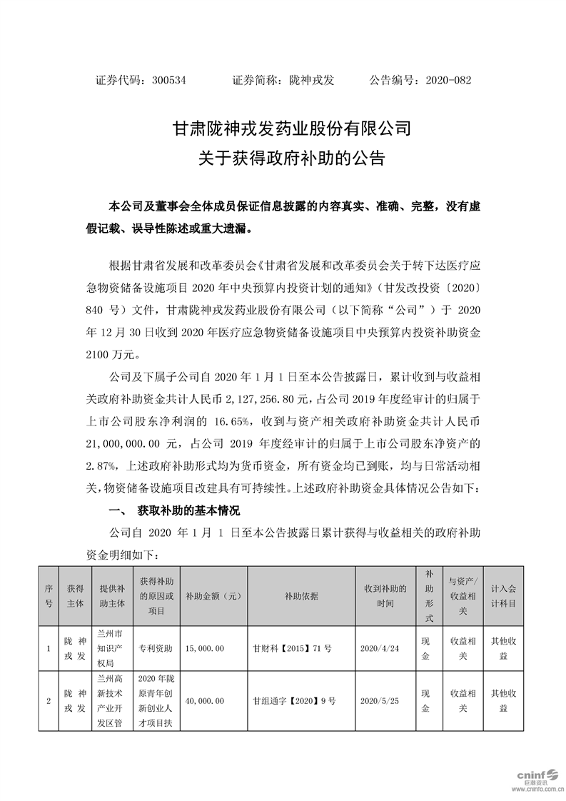 關(guān)于獲得政府補(bǔ)助的公告