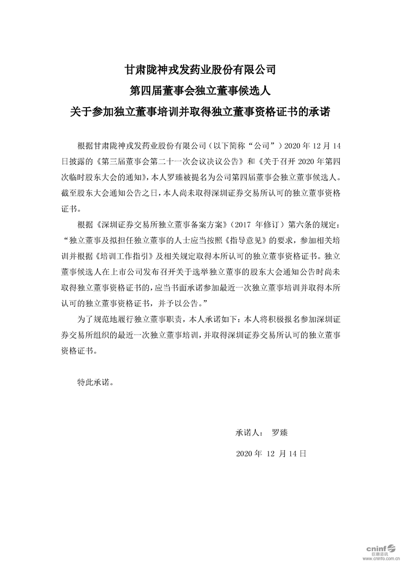 第四屆董事會獨立董事候選人關于參加獨立董事培訓并取得獨立董事資格證書的承諾
