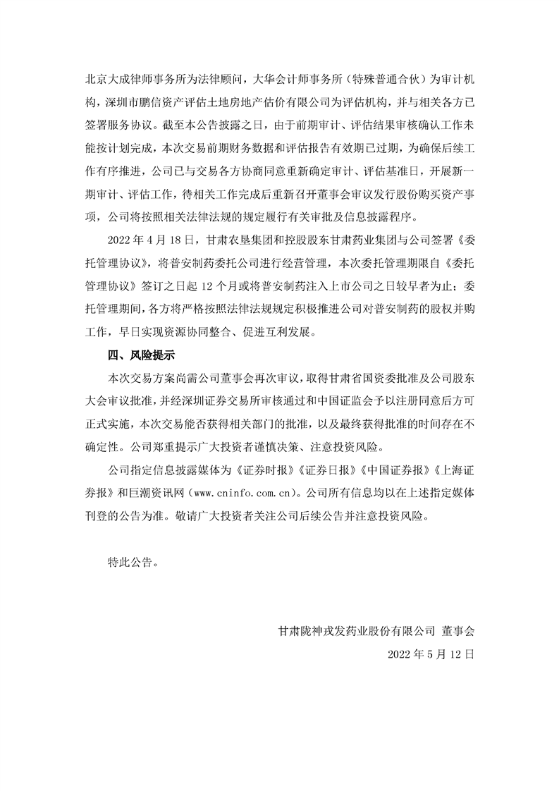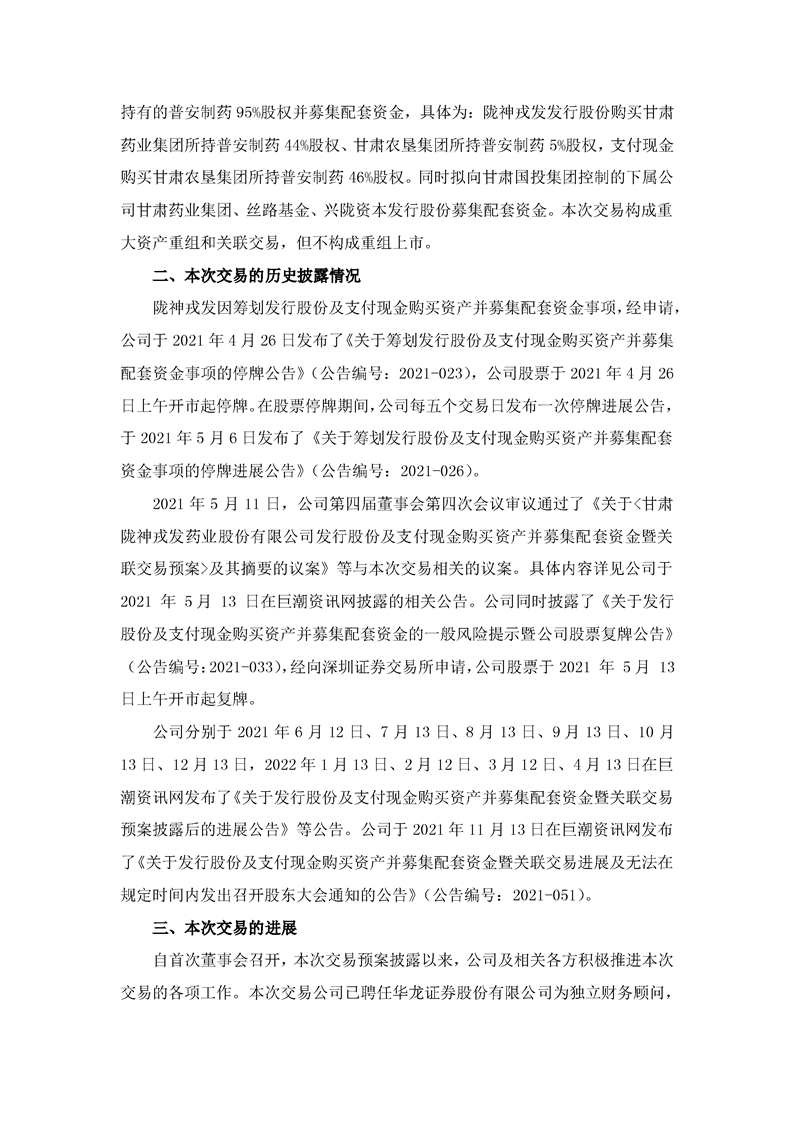 隴神戎發(fā):關(guān)于發(fā)行股份及支付現(xiàn)金購買資產(chǎn)并募集配套資金暨關(guān)聯(lián)交易預(yù)案披露后的進(jìn)展公告