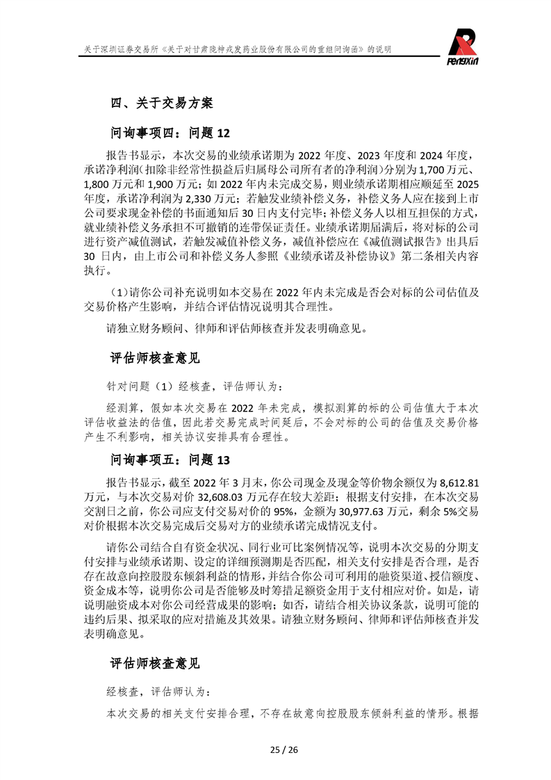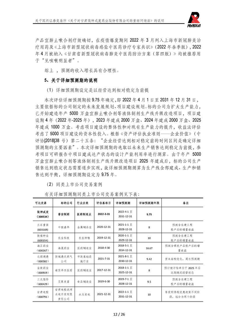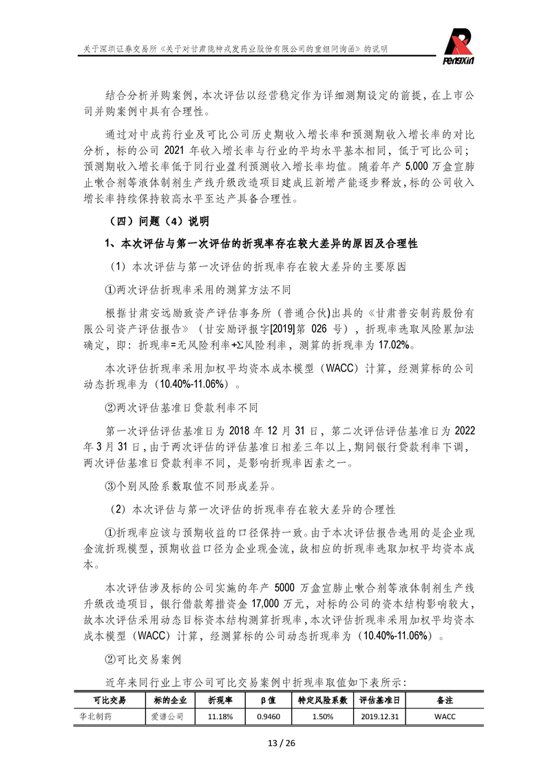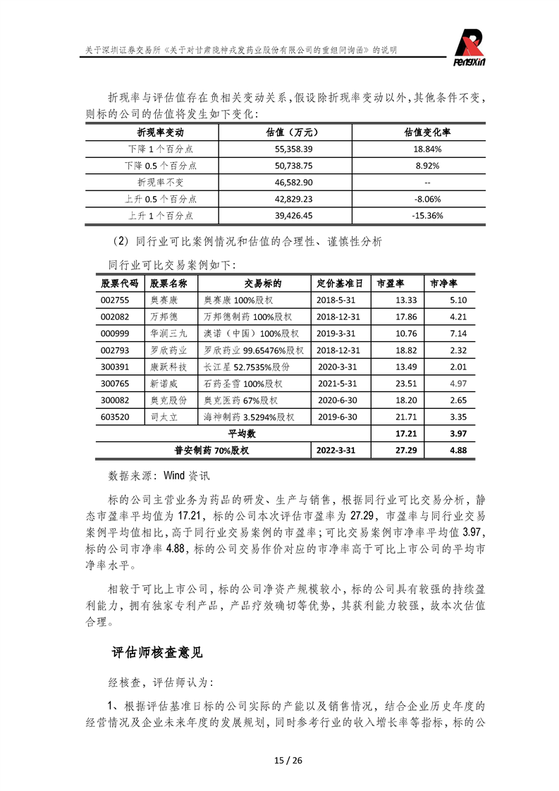 鵬信資產(chǎn)評(píng)估《關(guān)于對(duì)甘肅隴神戎發(fā)藥業(yè)股份有限公司的重組問詢函》的說明