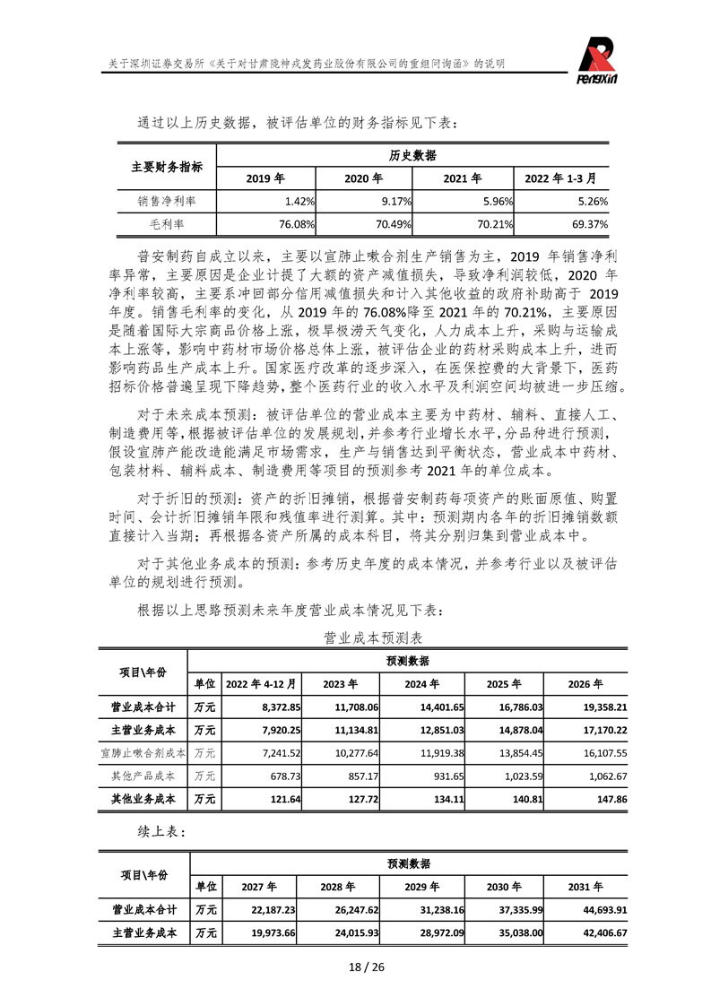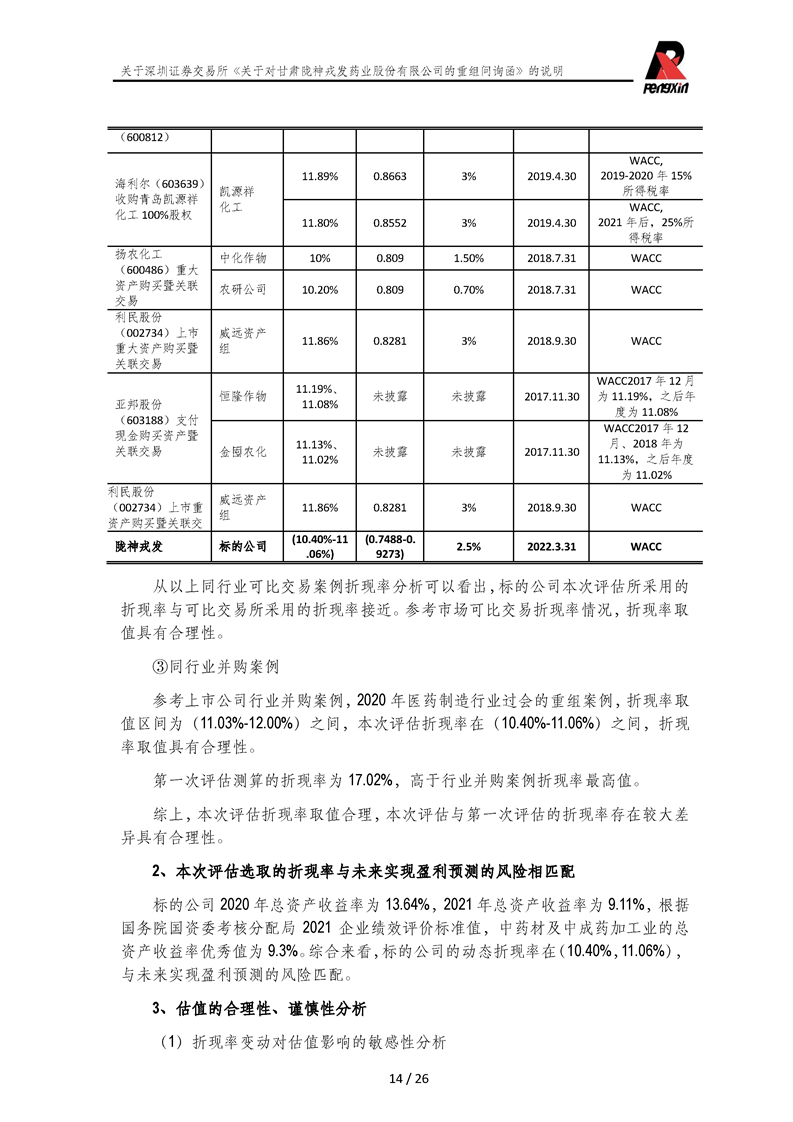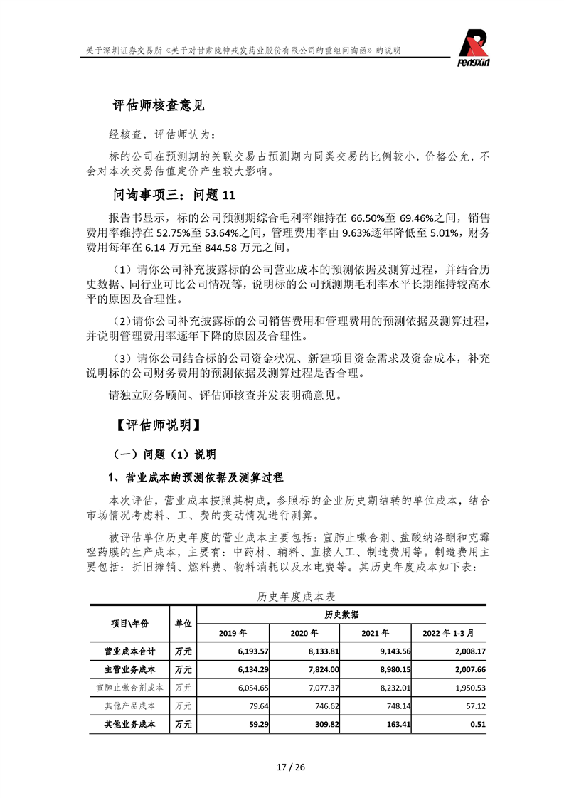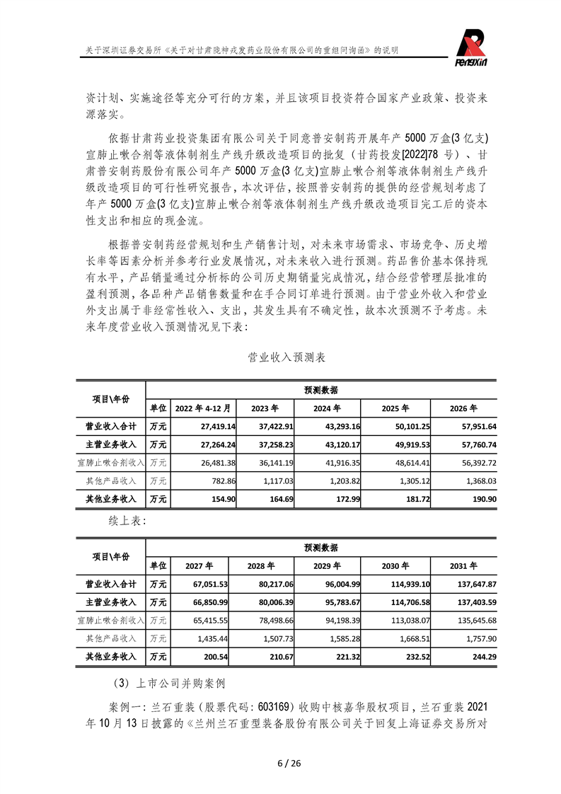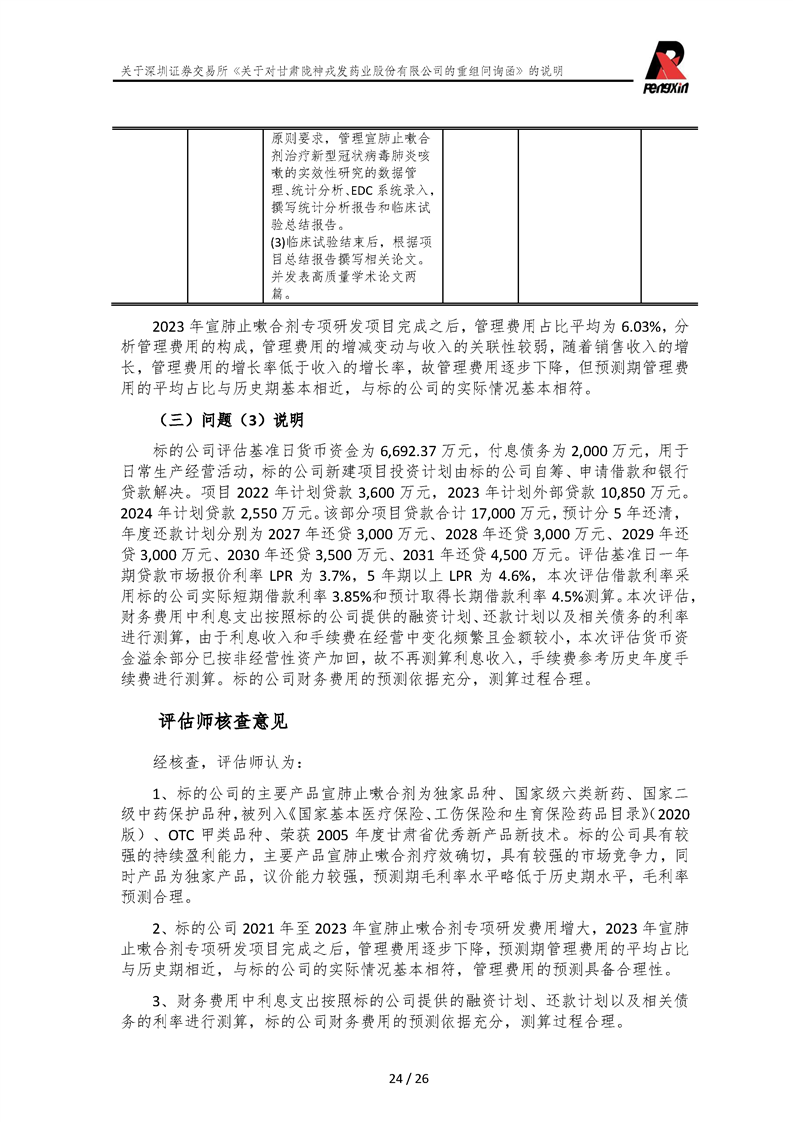 鵬信資產(chǎn)評(píng)估《關(guān)于對(duì)甘肅隴神戎發(fā)藥業(yè)股份有限公司的重組問詢函》的說明