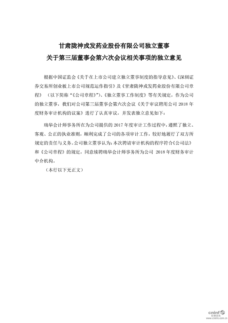 獨立董事 關(guān)于第三屆董事會第六次會議相關(guān)事項的獨立意見
