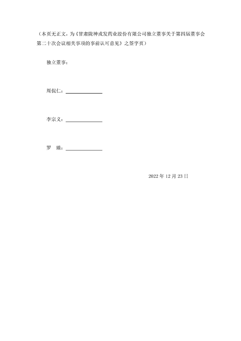 獨立董事關(guān)于第四屆董事會第二十次會議相關(guān)事項的事前認(rèn)可的意見