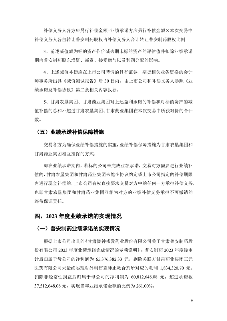 華龍證券股份有限公司關(guān)于甘肅隴神戎發(fā)藥業(yè)股份有限公司重大資產(chǎn)購買暨關(guān)聯(lián)交易之2023年度業(yè)績承諾實現(xiàn)情況的專項核查意見