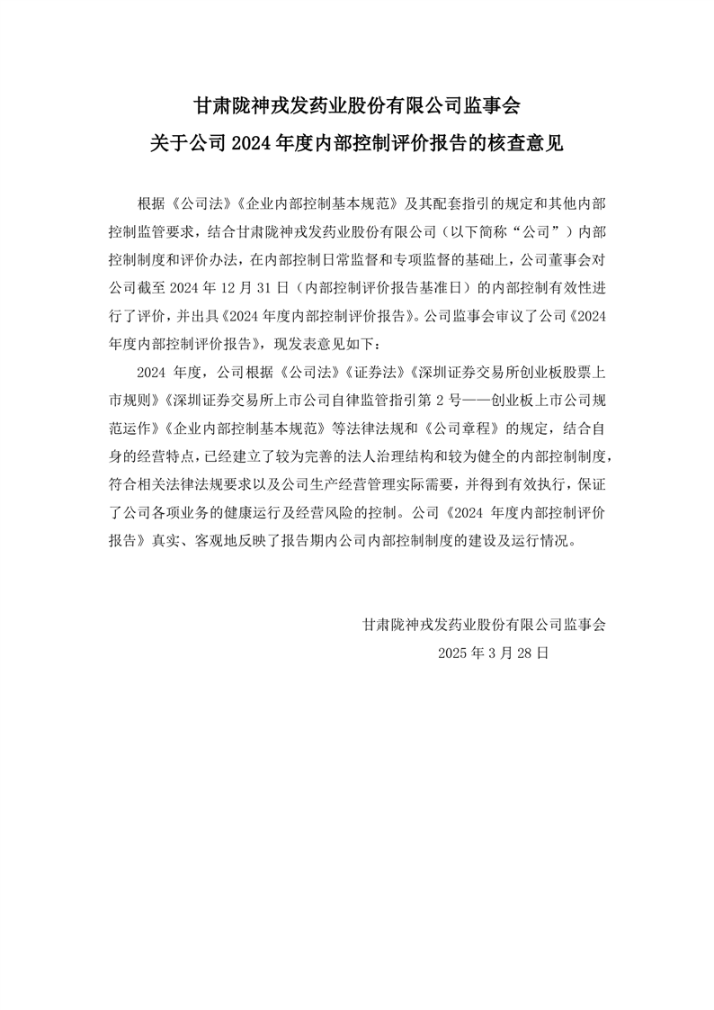 監(jiān)事會(huì)關(guān)于公司2024年度內(nèi)部控制評(píng)價(jià)報(bào)告的核查意見(jiàn)