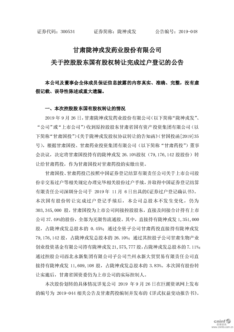 關于控股股東國有股權轉讓完成過戶登記的公告