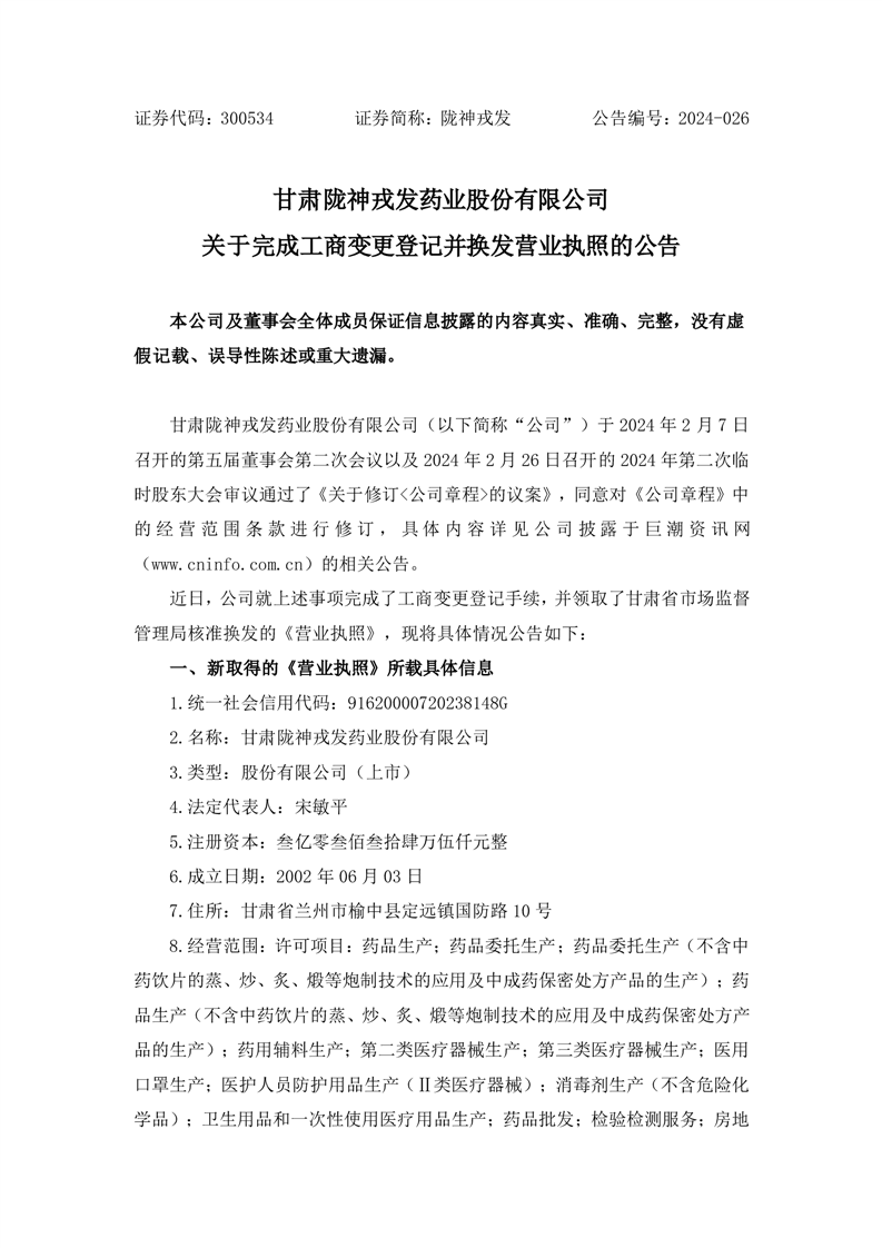 關(guān)于完成工商變更登記并換發(fā)營業(yè)執(zhí)照的公告