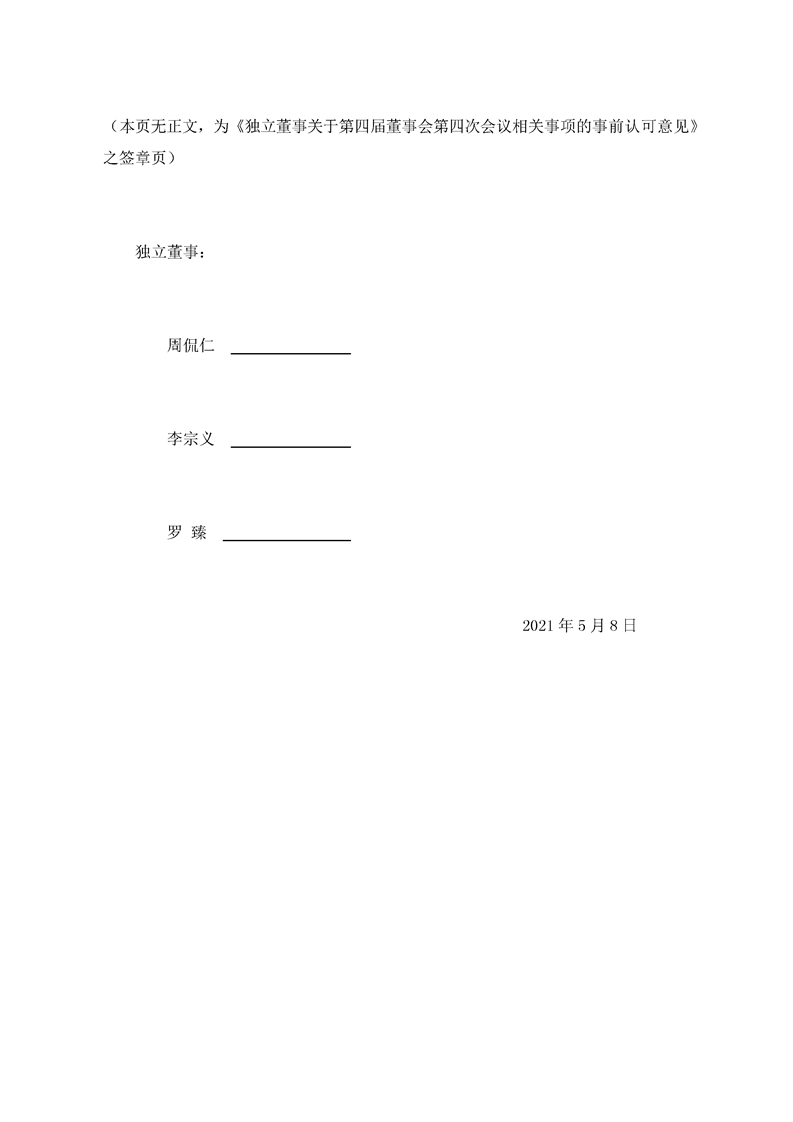 獨(dú)立董事關(guān)于第四屆董事會(huì)第四次會(huì)議相關(guān)事項(xiàng)的事前認(rèn)可的意見(jiàn)