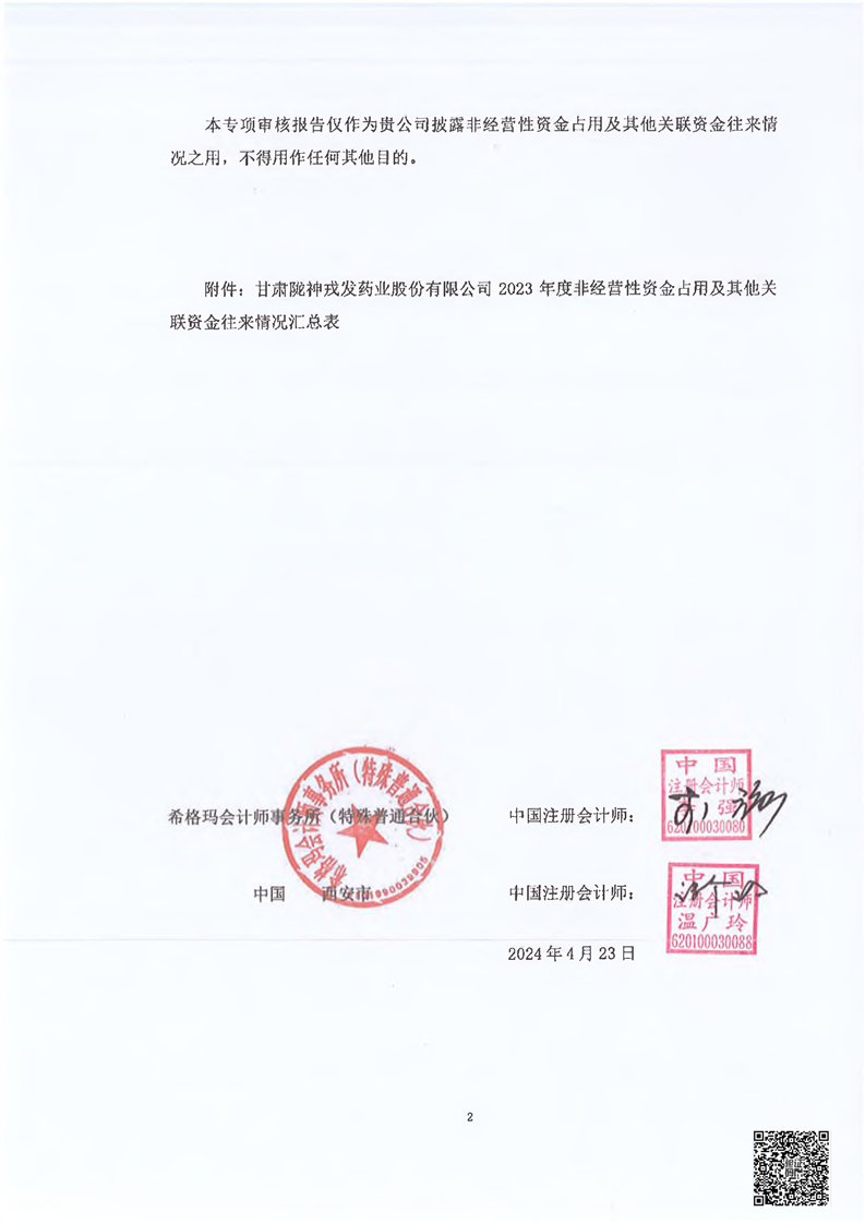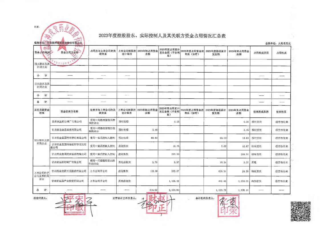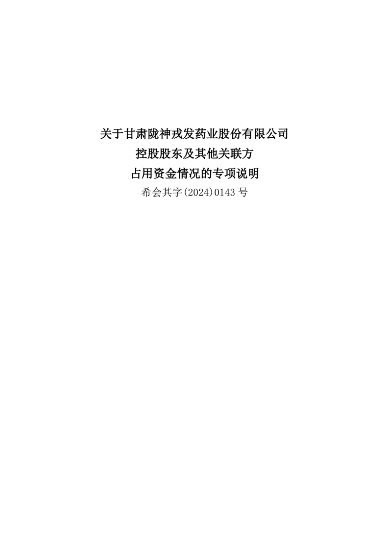 關(guān)于甘肅隴神戎發(fā)藥業(yè)股份有限公司控股股東及其他關(guān)聯(lián)方占用資金情況的專項(xiàng)說(shuō)明