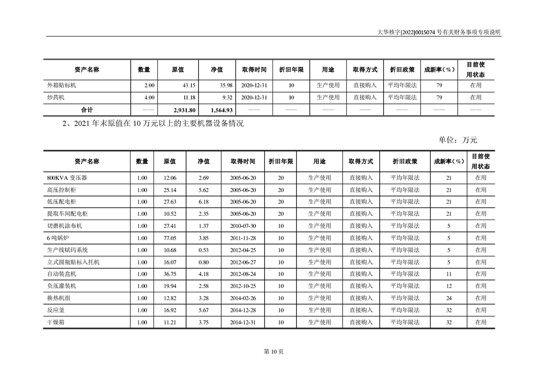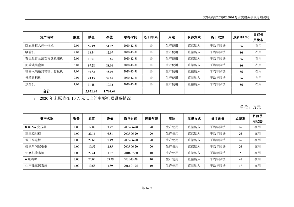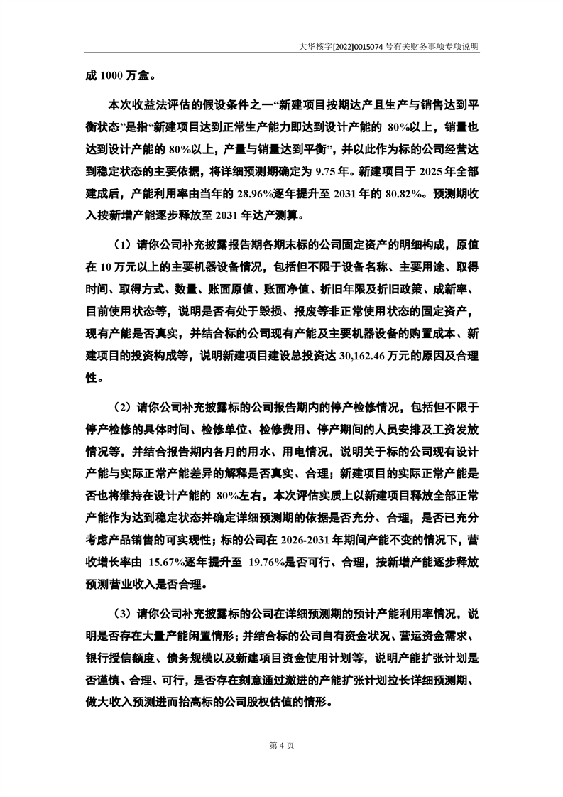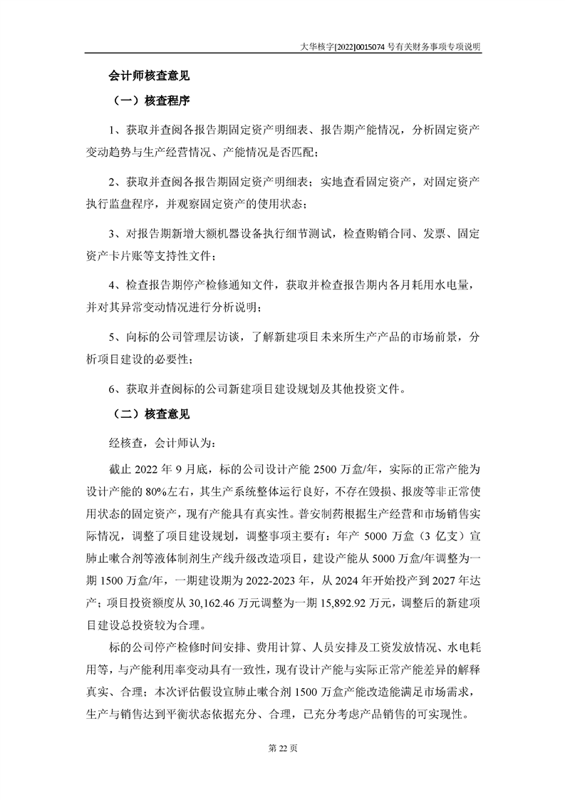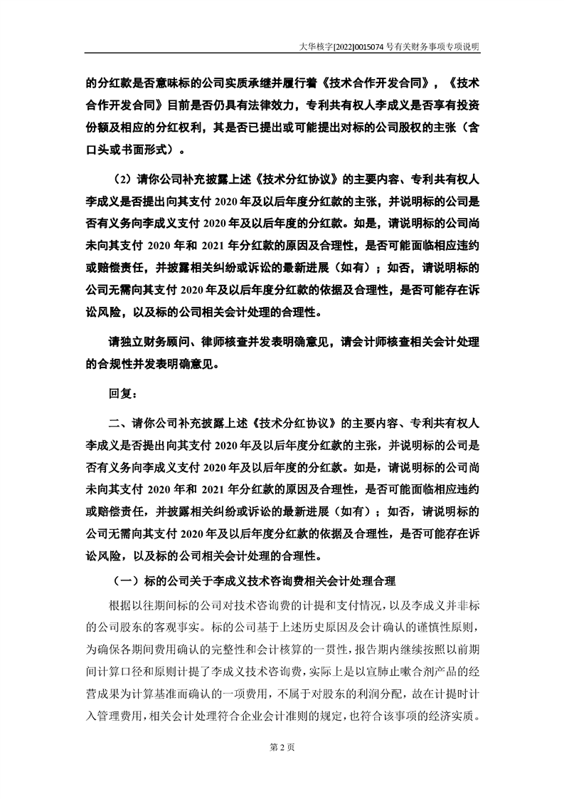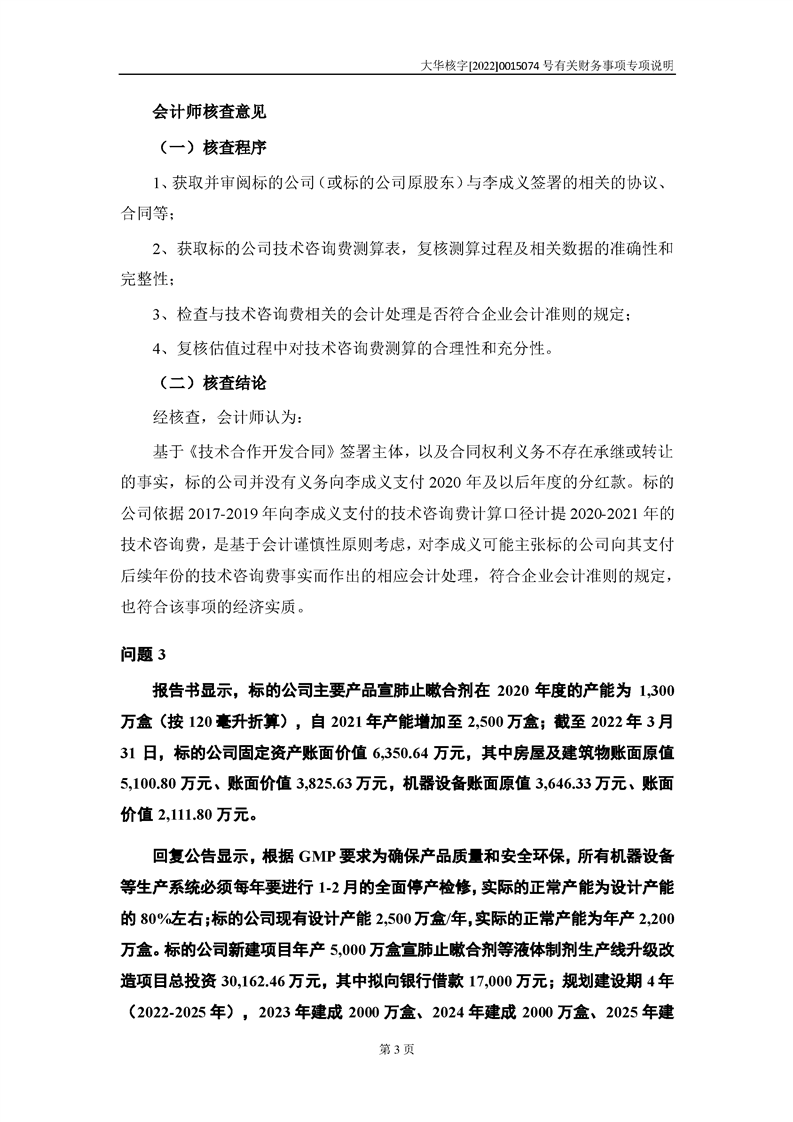 關(guān)于深圳證券交易所對(duì)甘肅隴神戎發(fā)藥業(yè)股份有限公司的重組問詢函中有關(guān)財(cái)務(wù)事項(xiàng)的專項(xiàng)說明-大華核字[2022]0015074號(hào)