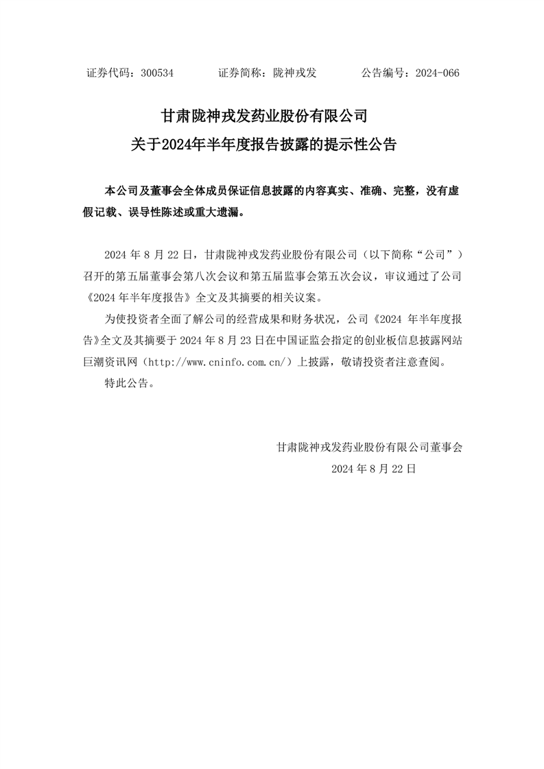 關(guān)于2024年半年度報(bào)告披露的提示性公告