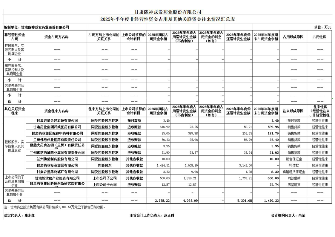 2025年半年度非經(jīng)營(yíng)性資金占用及其他關(guān)聯(lián)資金往來情況匯總表
